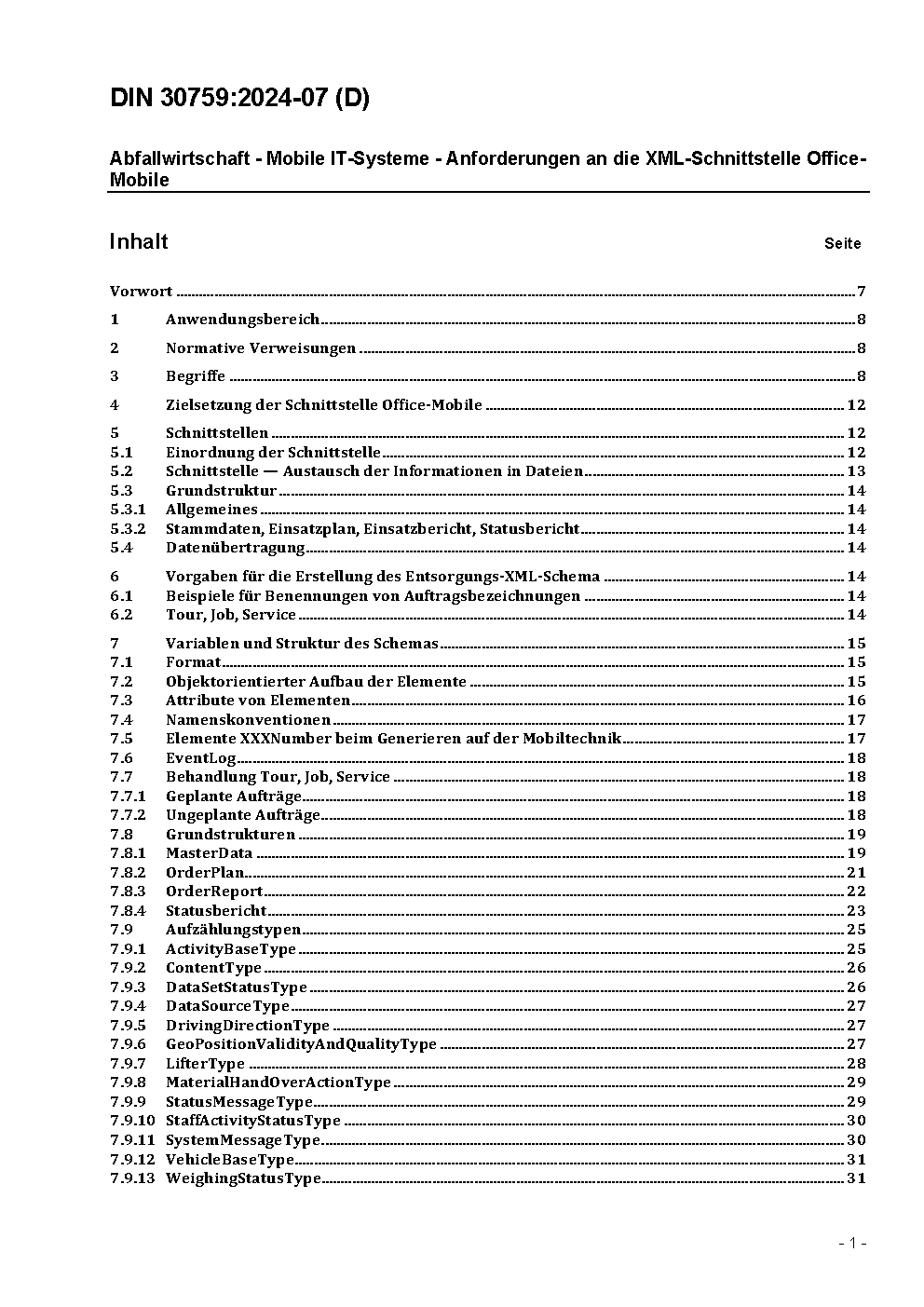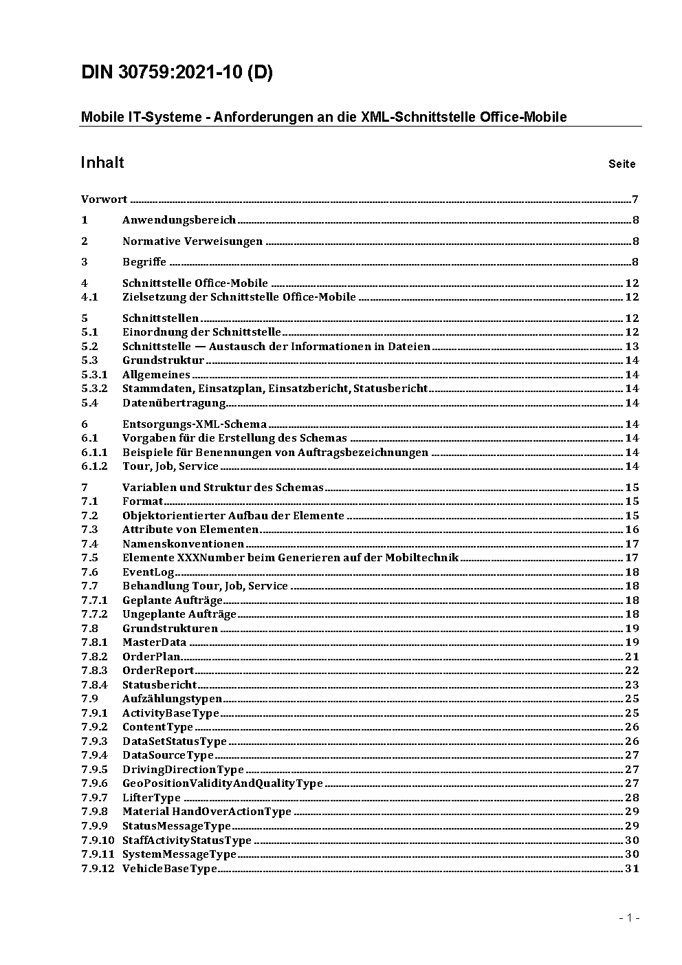Mobile IT Systems - Requirements for the XML interface Office-Mobile
