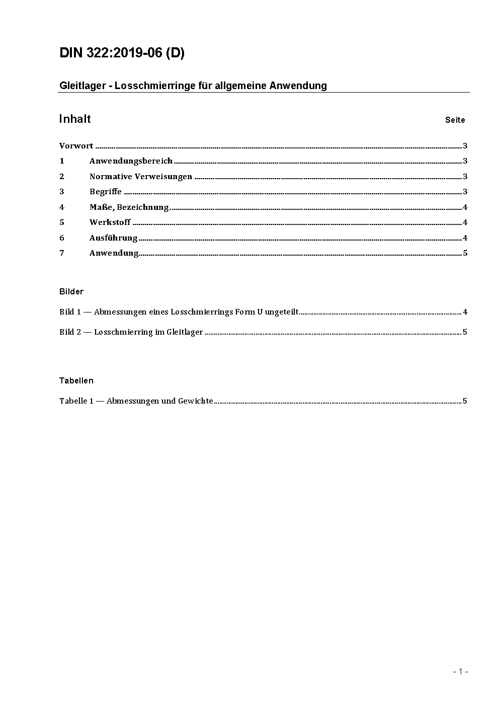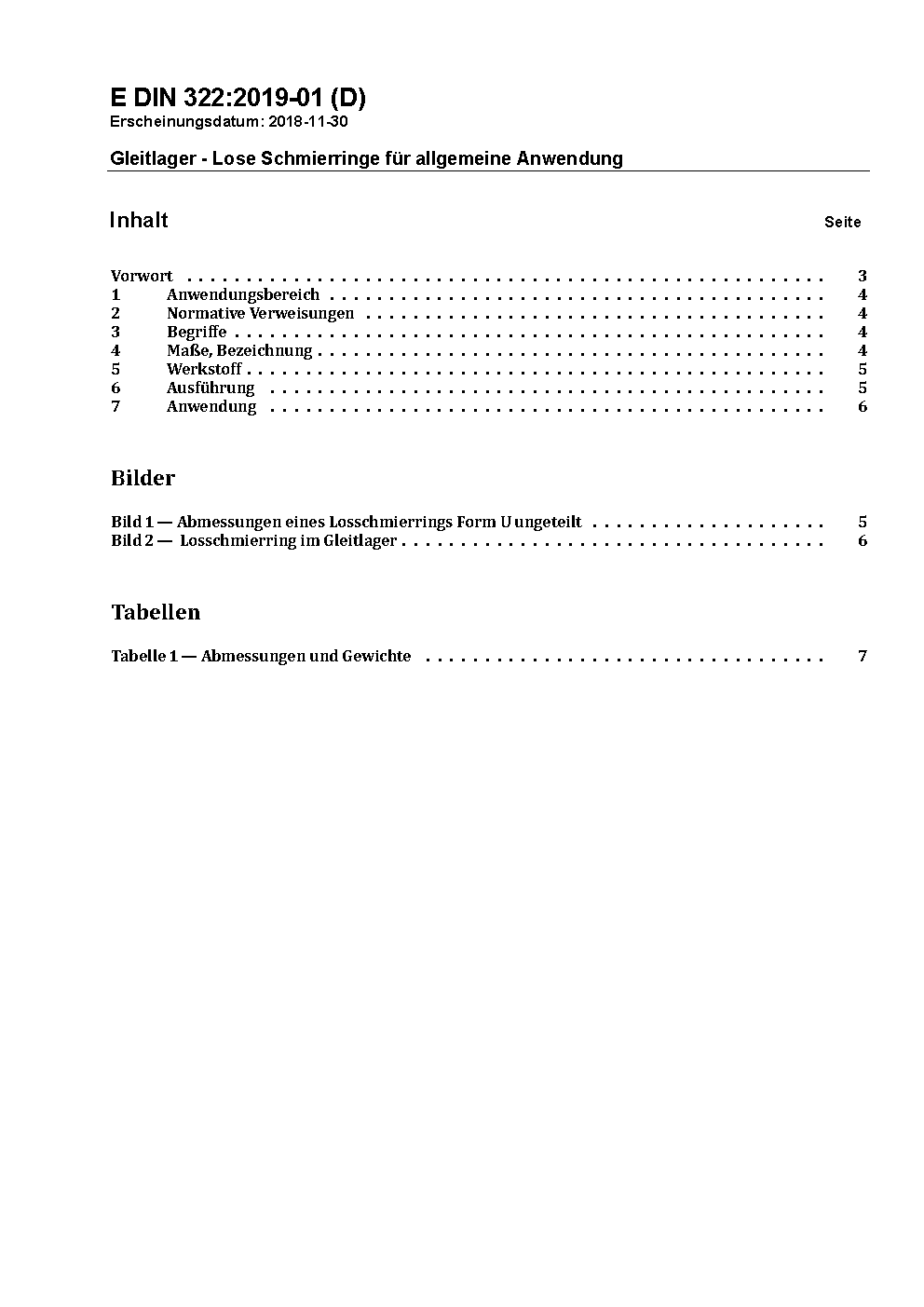 Gleitlager; Lose Schmierringe für allgemeine Anwendung