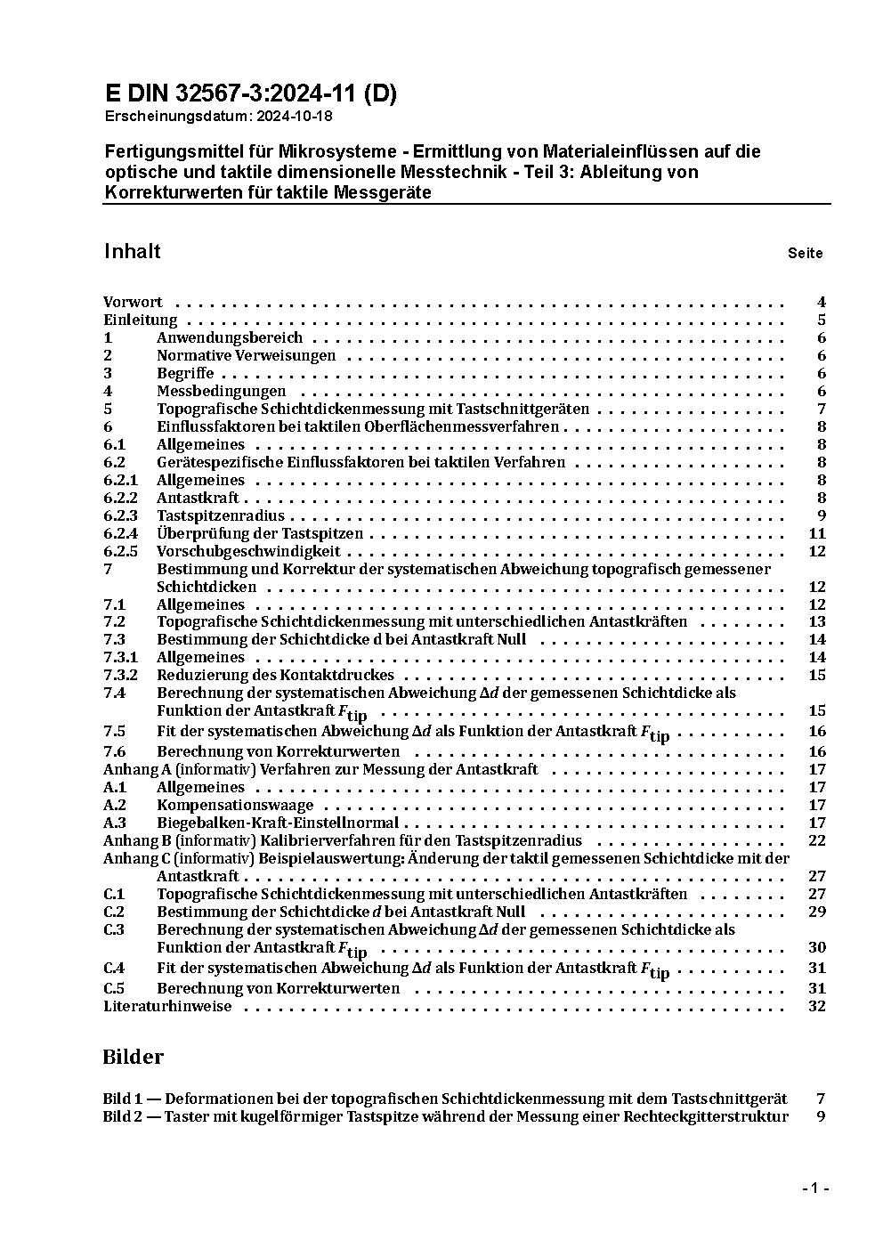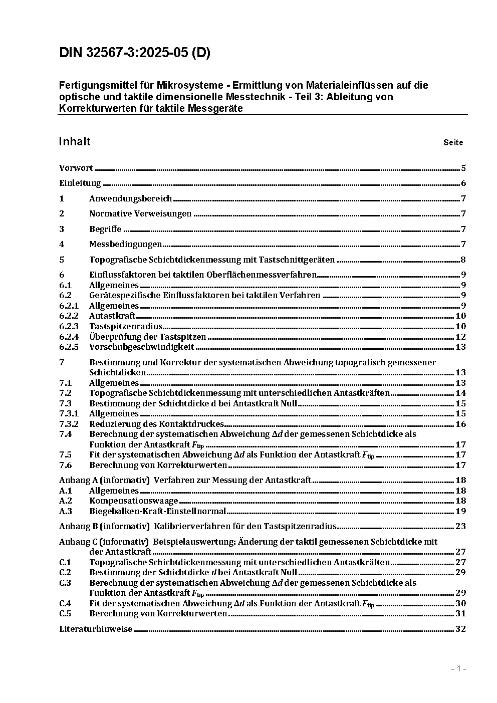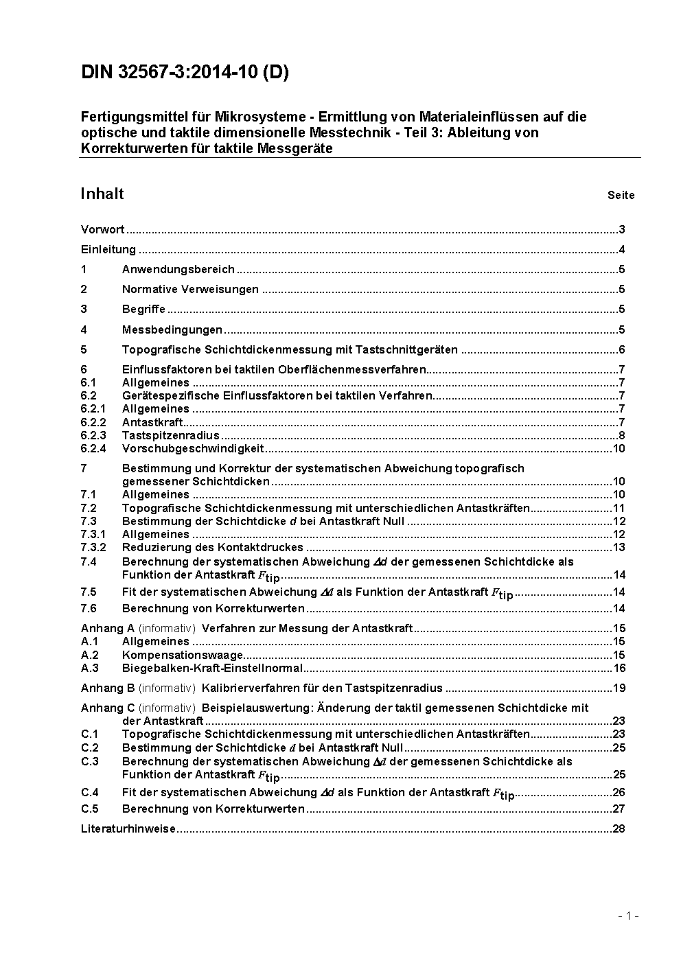 Fertigungsmittel für Mikrosysteme - Ermittlung von Materialeinflüssen auf die optische und taktile dimensionelle Messtechnik - Teil 3: Ableitung von Korrekturwerten für taktile Messgeräte