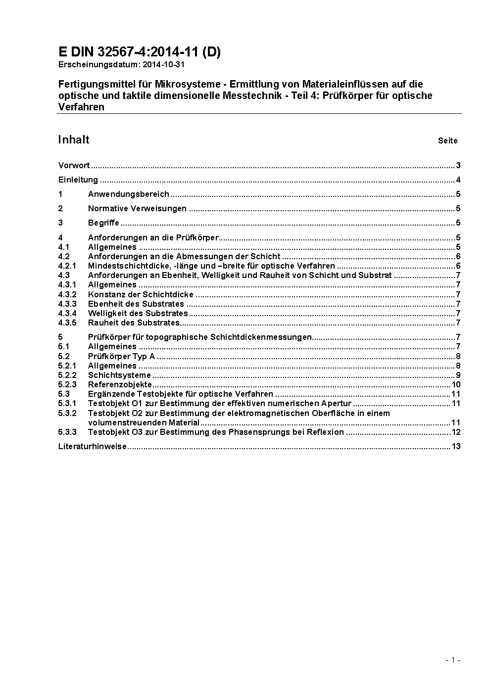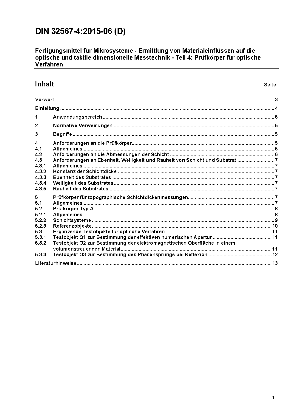 Fertigungsmittel für Mikrosysteme - Ermittlung von Materialeinflüssen auf die optische und taktile dimensionelle Messtechnik - Teil 4: Prüfkörper für optische Verfahren