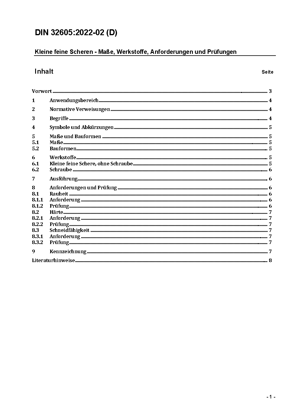 Kleine feine Scheren - Maße, Werkstoffe, Anforderungen und Prüfungen