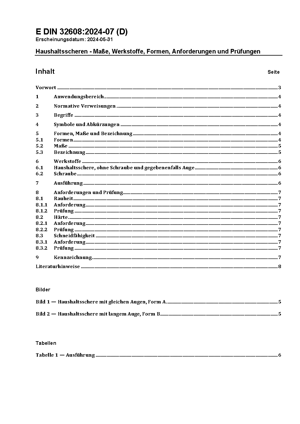 Haushaltsscheren - Maße, Werkstoffe, Formen, Anforderungen und Prüfungen