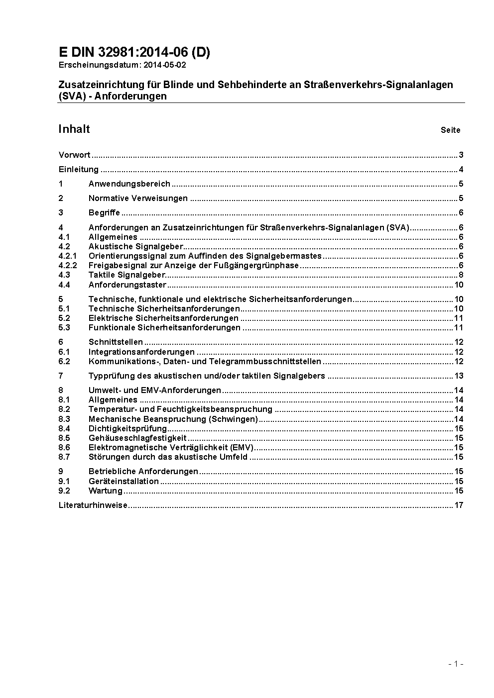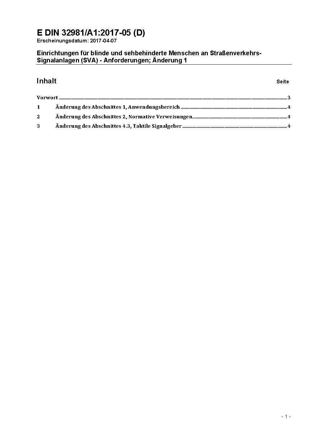 Einrichtungen für blinde und sehbehinderte Menschen an Straßenverkehrs-Signalanlagen (SVA) - Anforderungen; Änderung 1
