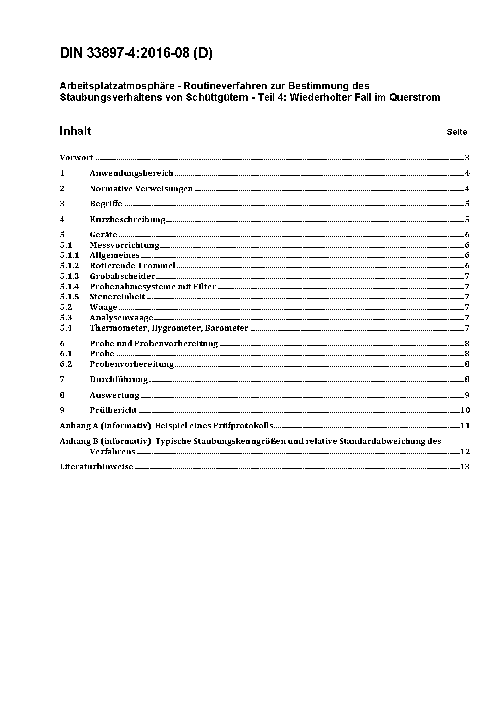 Arbeitsplatzatmosphäre - Routineverfahren zur Bestimmung des Staubungsverhaltens von Schüttgütern - Teil 4: Wiederholter Fall im Querstrom