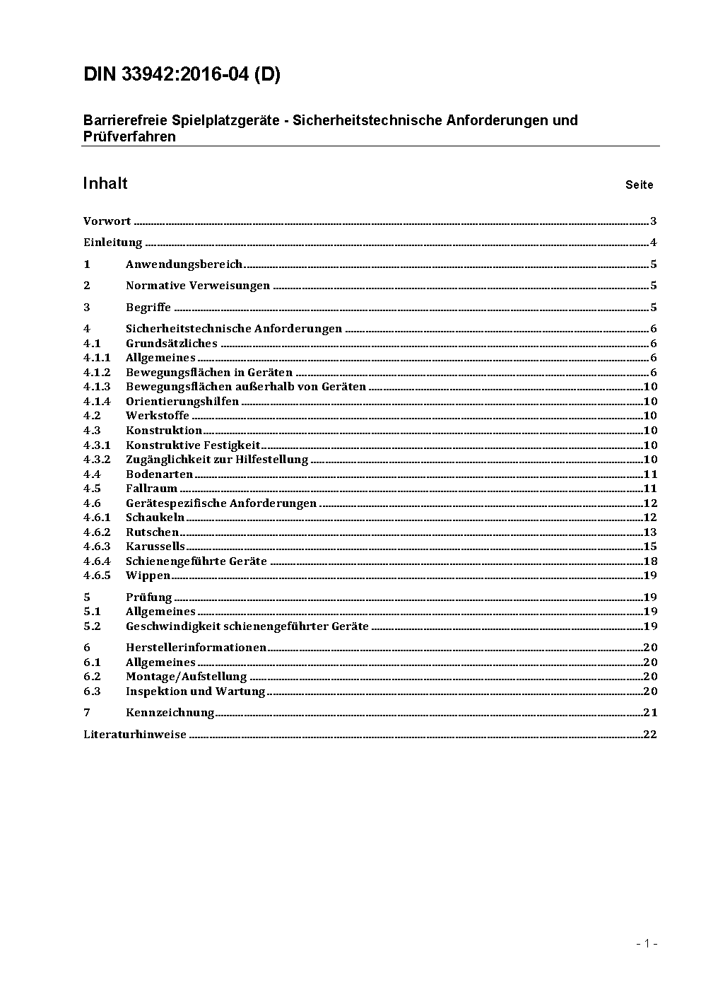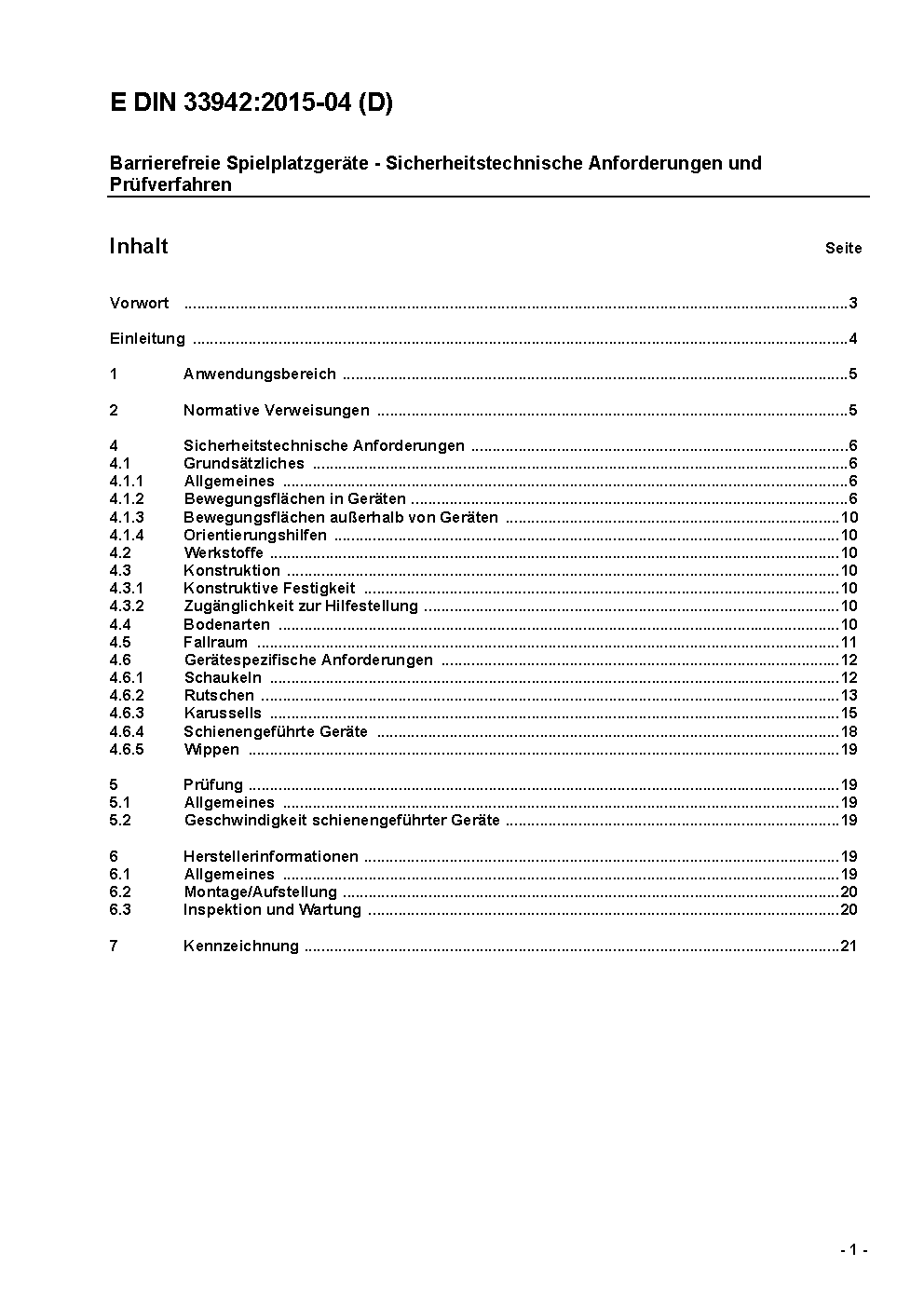Barrierefreie Spielplatzgeräte - Sicherheitstechnische Anforderungen und Prüfverfahren / Achtung: Übergangsfrist, festgelegt durch DIN 33942 (2016-04), bis 2016-10-01 beachten.