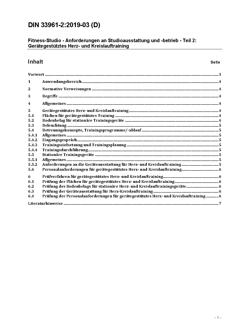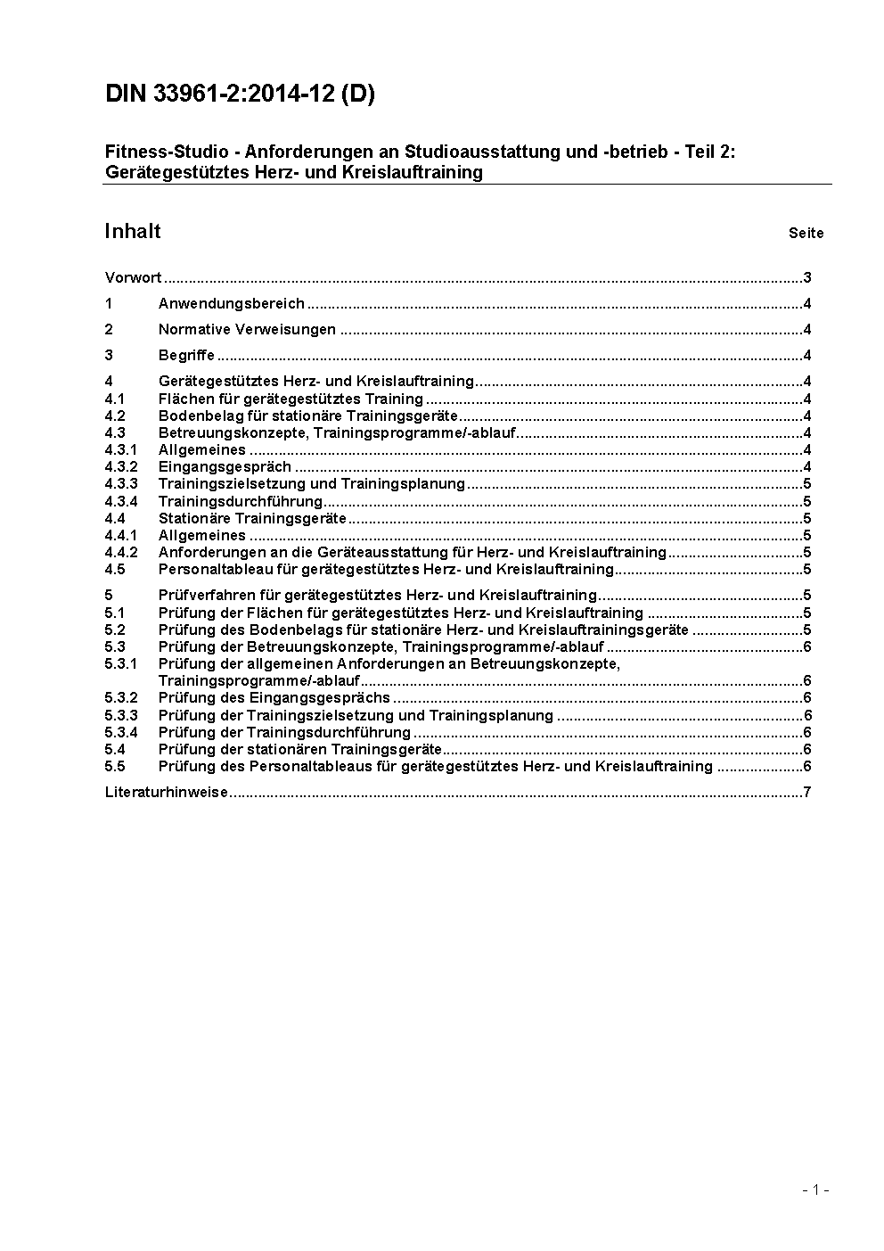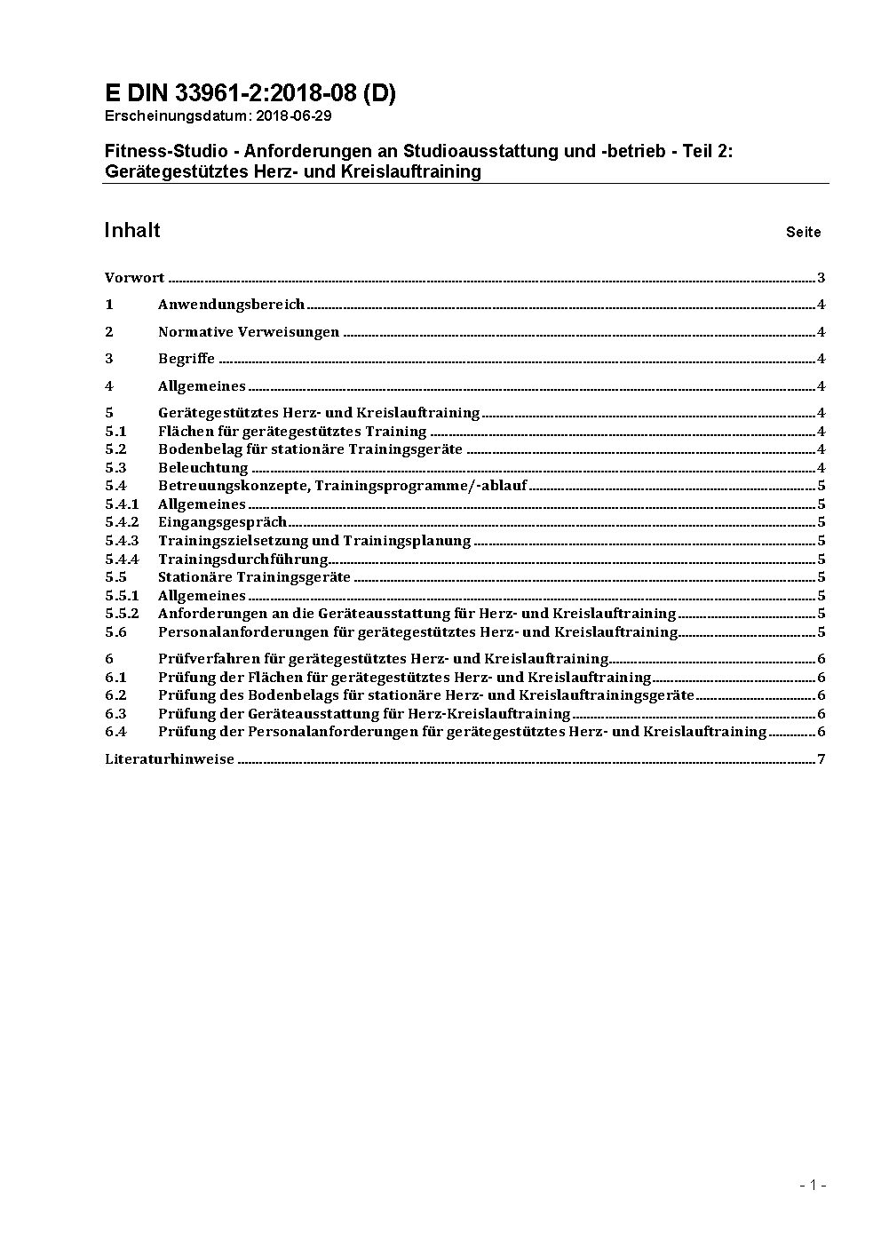 Fitness-Studio - Anforderungen an Studioausstattung und -betrieb - Teil 2: Gerätegestütztes Herz- und Kreislauftraining