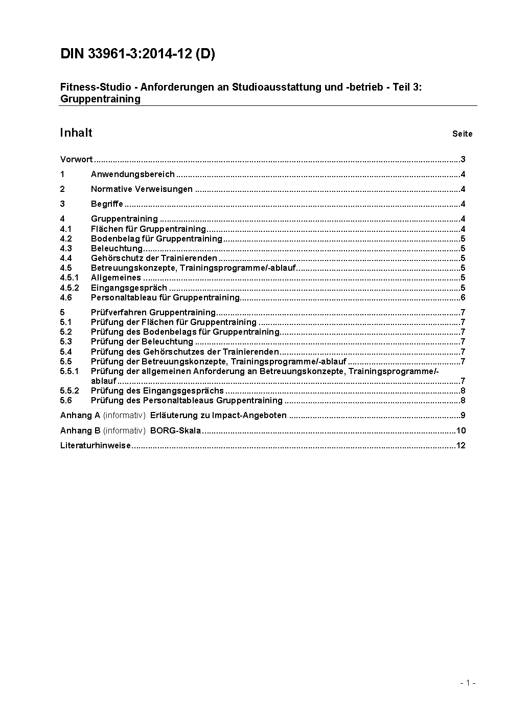Fitness-Studio - Anforderungen an Studioausstattung und -betrieb - Teil 3: Gruppentraining