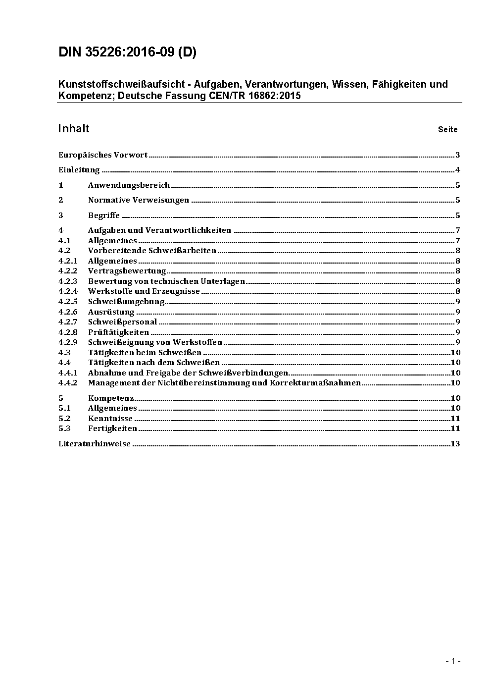 Kunststoffschweißaufsicht - Aufgaben, Verantwortungen, Wissen, Fähigkeiten und Kompetenz; Deutsche Fassung CEN/TR 16862:2015