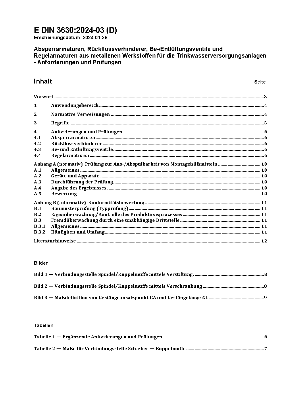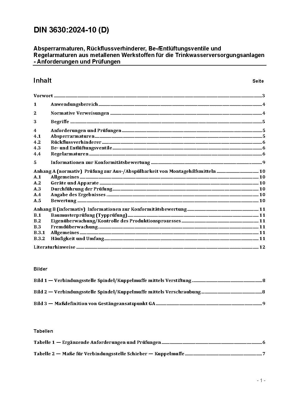 Absperrarmaturen, Rückflussverhinderer, Be-/Entlüftungsventile und Regelarmaturen aus metallenen Werkstoffen für die Trinkwasserversorgungsanlagen - Anforderungen und Prüfungen