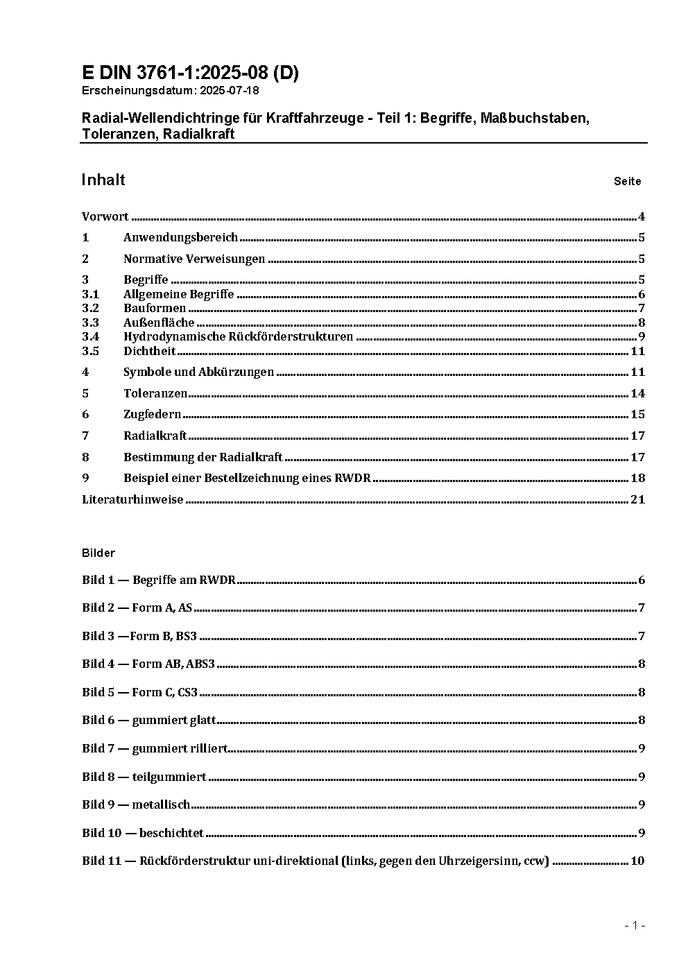 Radial-Wellendichtringe für Kraftfahrzeuge; Begriffe; Maßbuchstaben, zulässige Abweichungen, Radialkraft