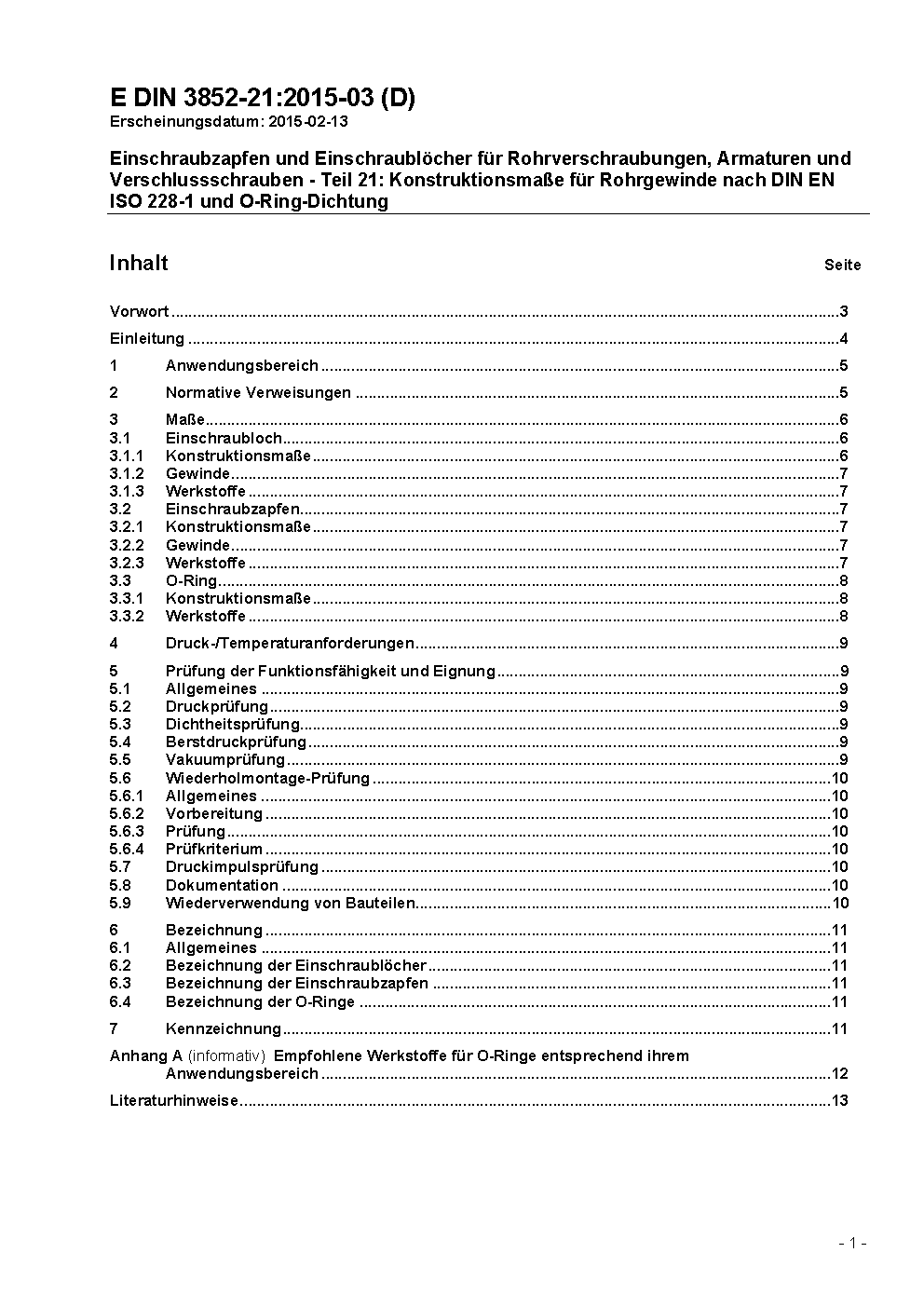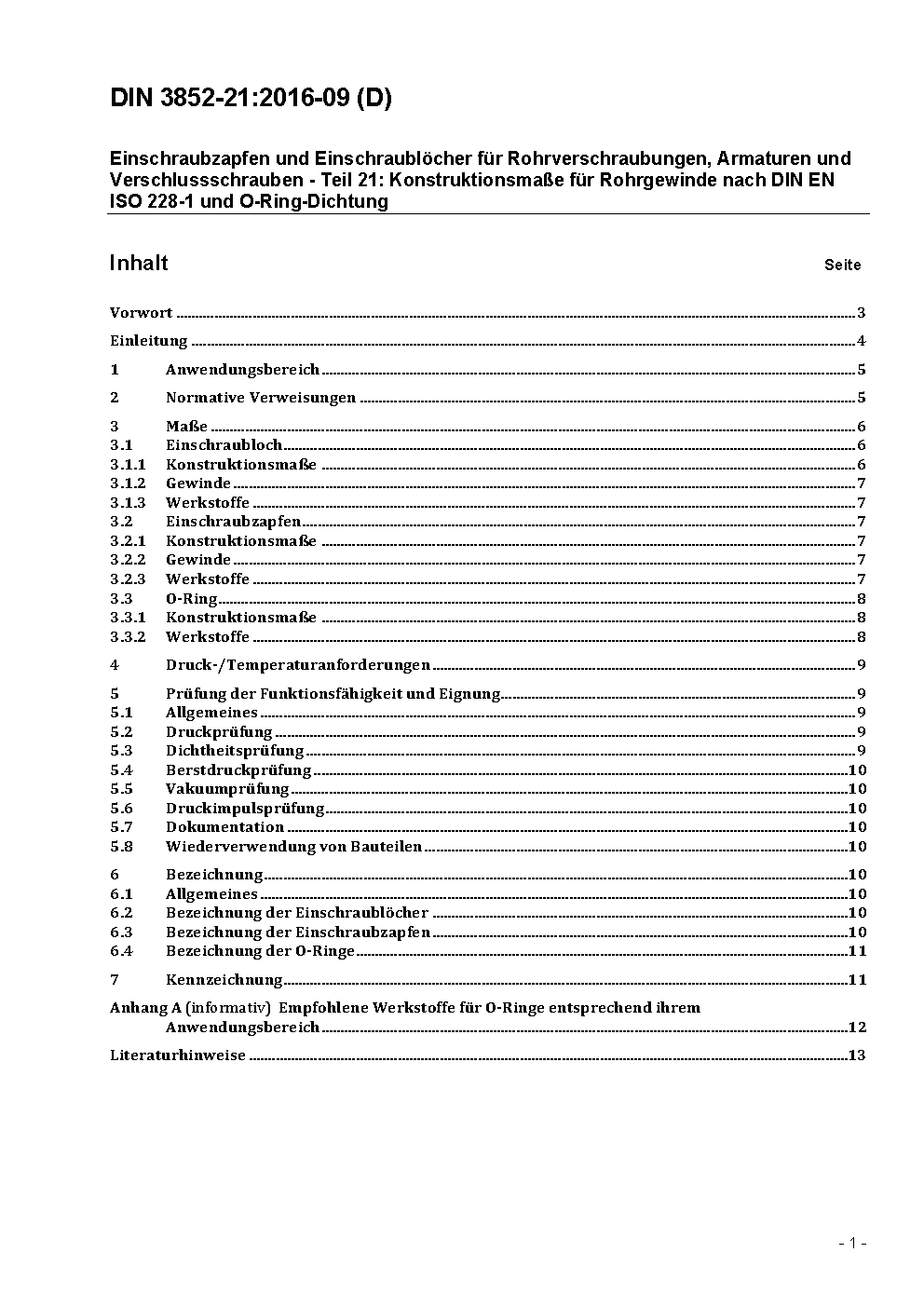 Einschraubzapfen und Einschraublöcher für Rohrverschraubungen, Armaturen und Verschlussschrauben - Teil 21: Konstruktionsmaße für Rohrgewinde nach DIN EN ISO 228-1 und O-Ring-Dichtung