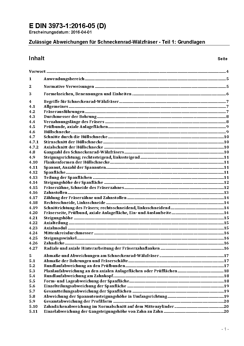 Zulässige Abweichungen für Schneckenrad-Wälzfräser - Teil 1: Grundlagen