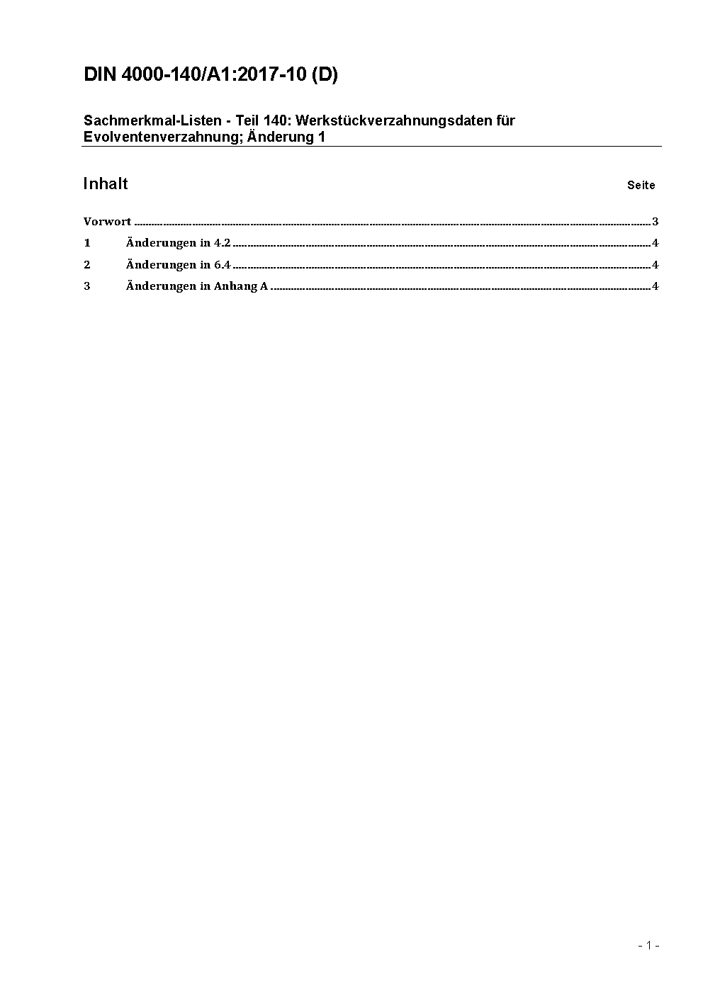 Sachmerkmal-Listen - Teil 140: Werkstückverzahnungsdaten für Evolventenverzahnung; Änderung 1