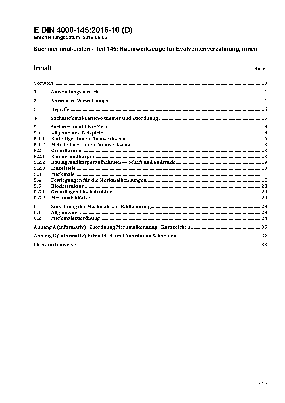 Sachmerkmal-Listen - Teil 145: Räumwerkzeuge für Evolventenverzahnung, innen