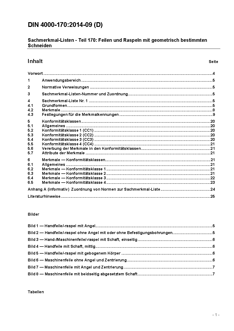Sachmerkmal-Listen - Teil 170: Feilen und Raspeln mit geometrisch bestimmten Schneiden