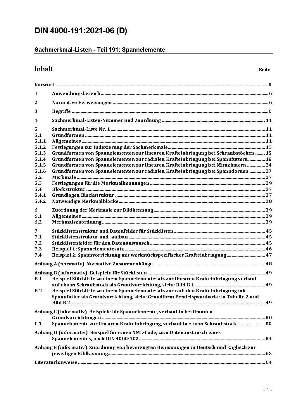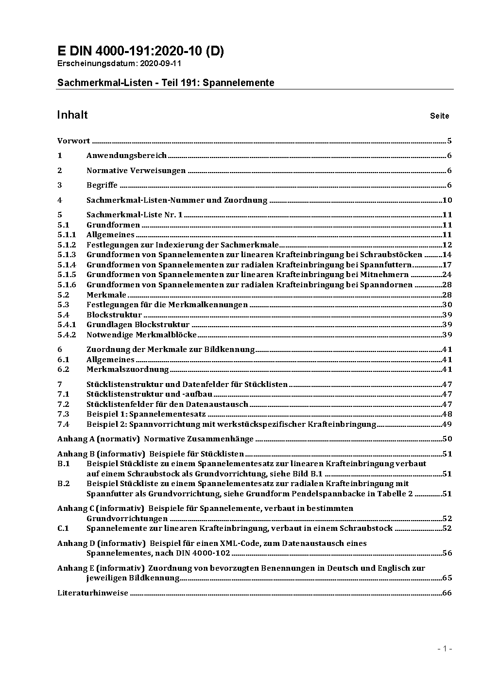Sachmerkmal-Listen - Teil 191: Spannelemente