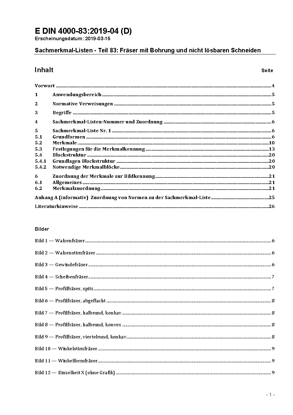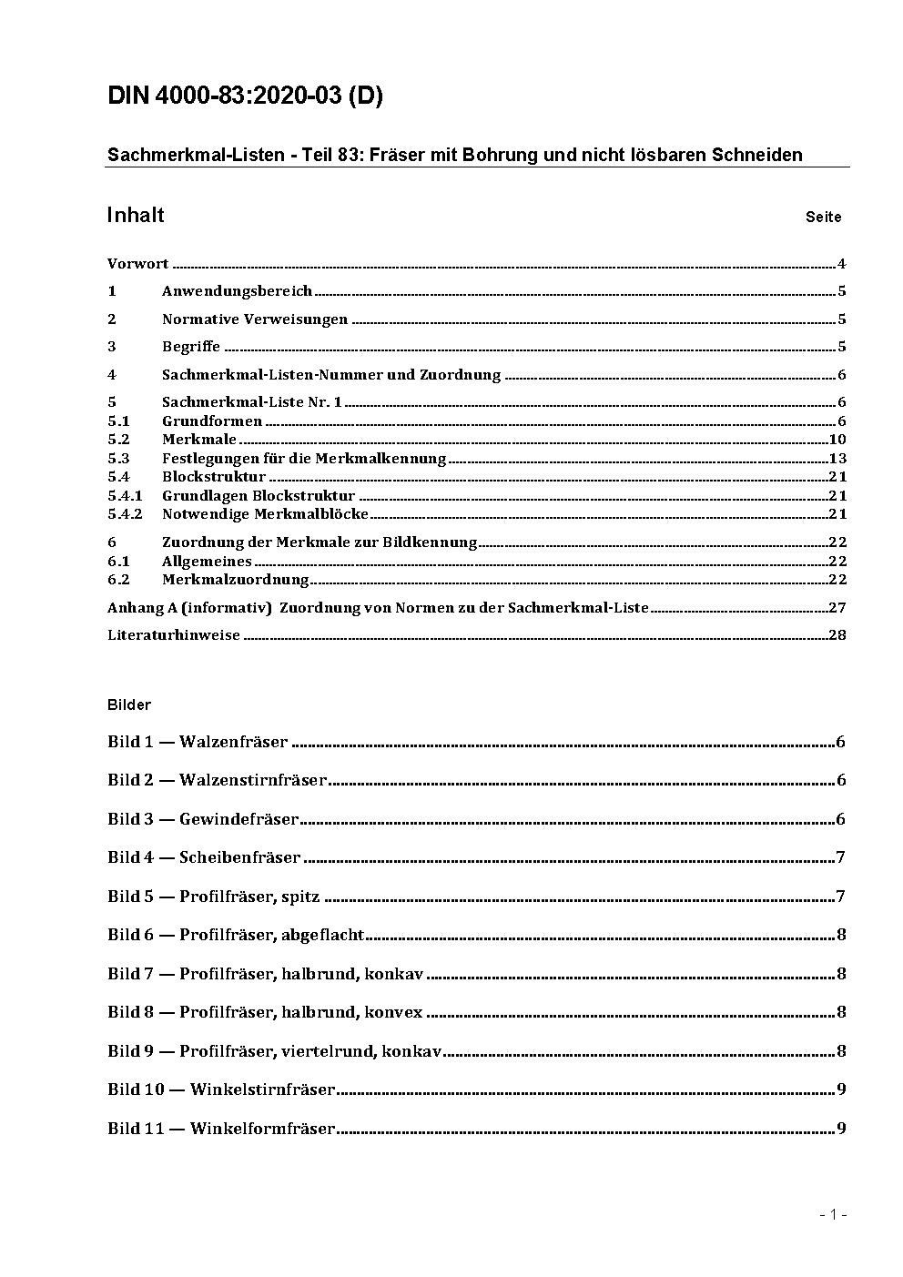 Sachmerkmal-Listen - Teil 83: Fräser mit Bohrung und nicht lösbaren Schneiden