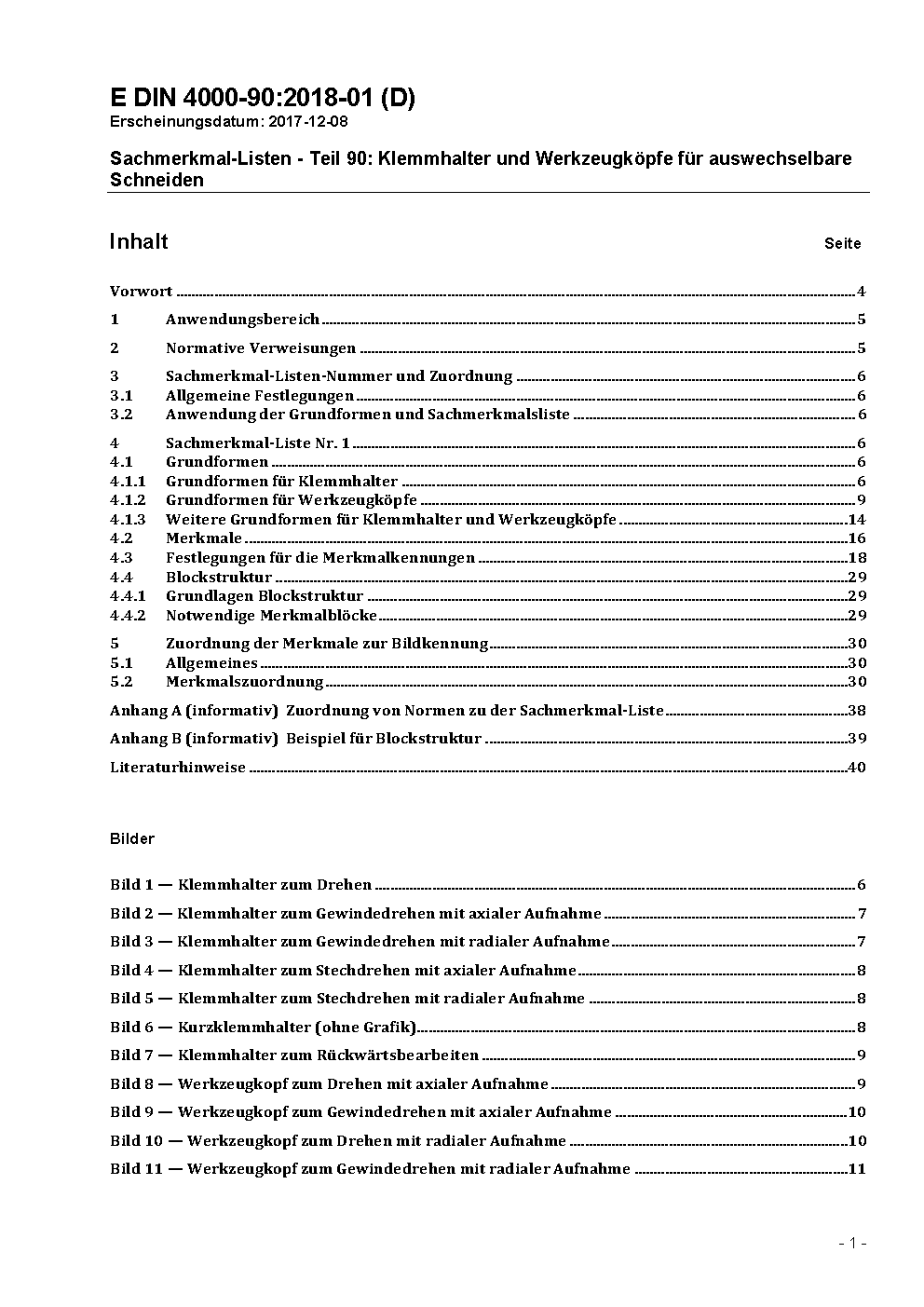 Sachmerkmal-Leisten - Teil 90: Für Klemmhalter mit auswechselbaren Schneiden / Achtung: Gilt in Verbindung mit DIN 4000-1 (1992-09)