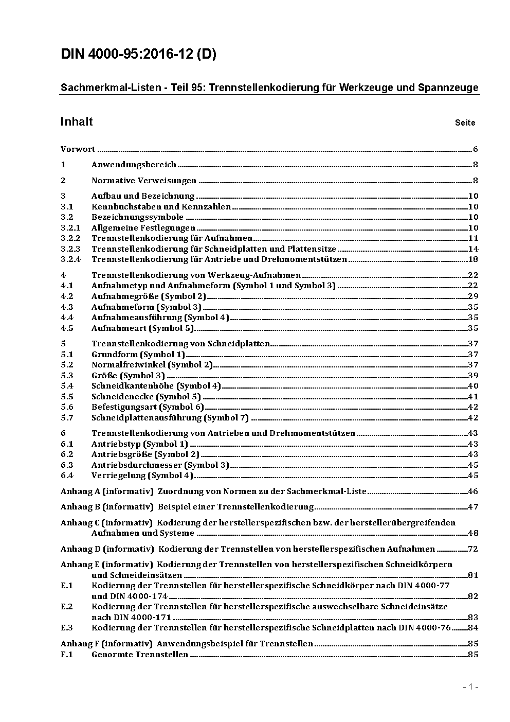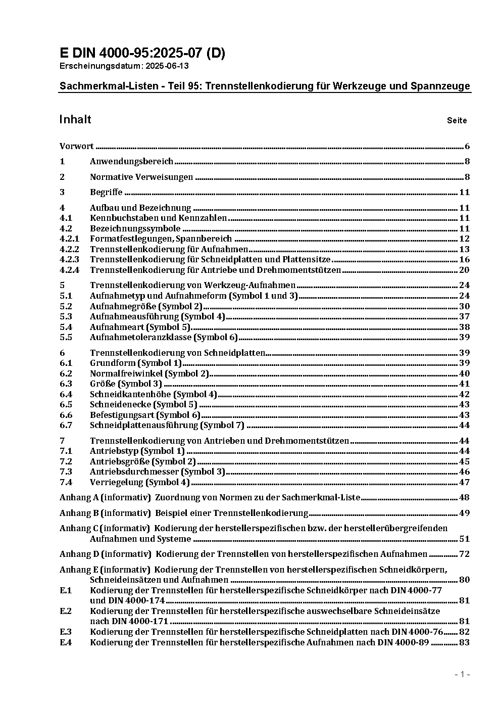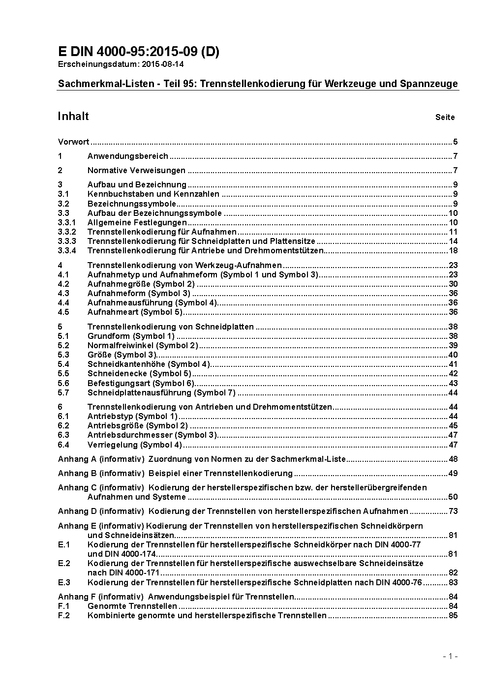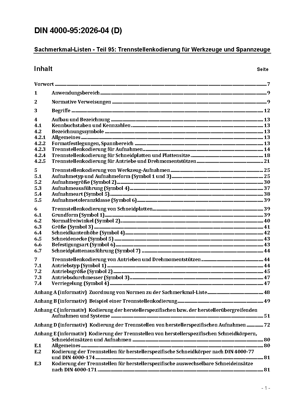 Sachmerkmal-Listen - Teil 95: Trennstellenkodierung für Werkzeuge und Spannzeuge, Kurzzeichen für firmenspezifische Aufnahmen