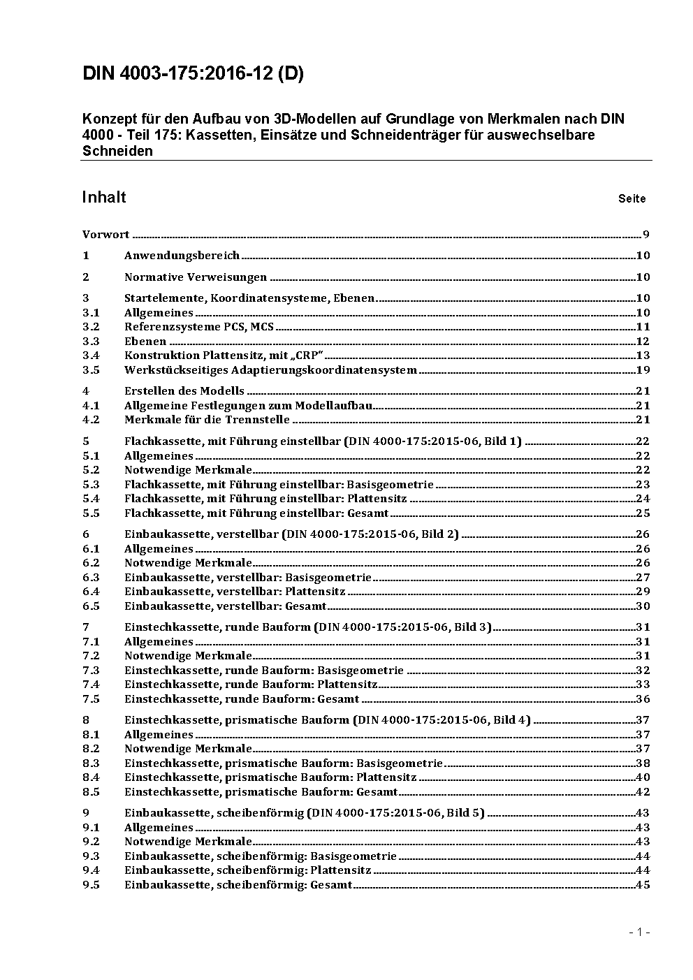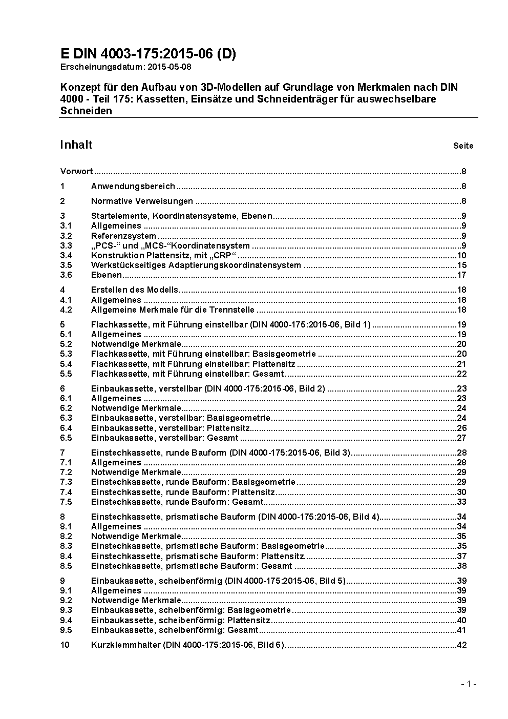 Konzept für den Aufbau von 3D-Modellen auf Grundlage von Merkmalen nach DIN 4000 - Teil 175: Kassetten, Einsätze und Schneidenträger für auswechselbare Schneiden / Achtung: Gilt in Verbindung mit DIN 4000-175 (2015-06), DIN 4003-1 (2014-02)