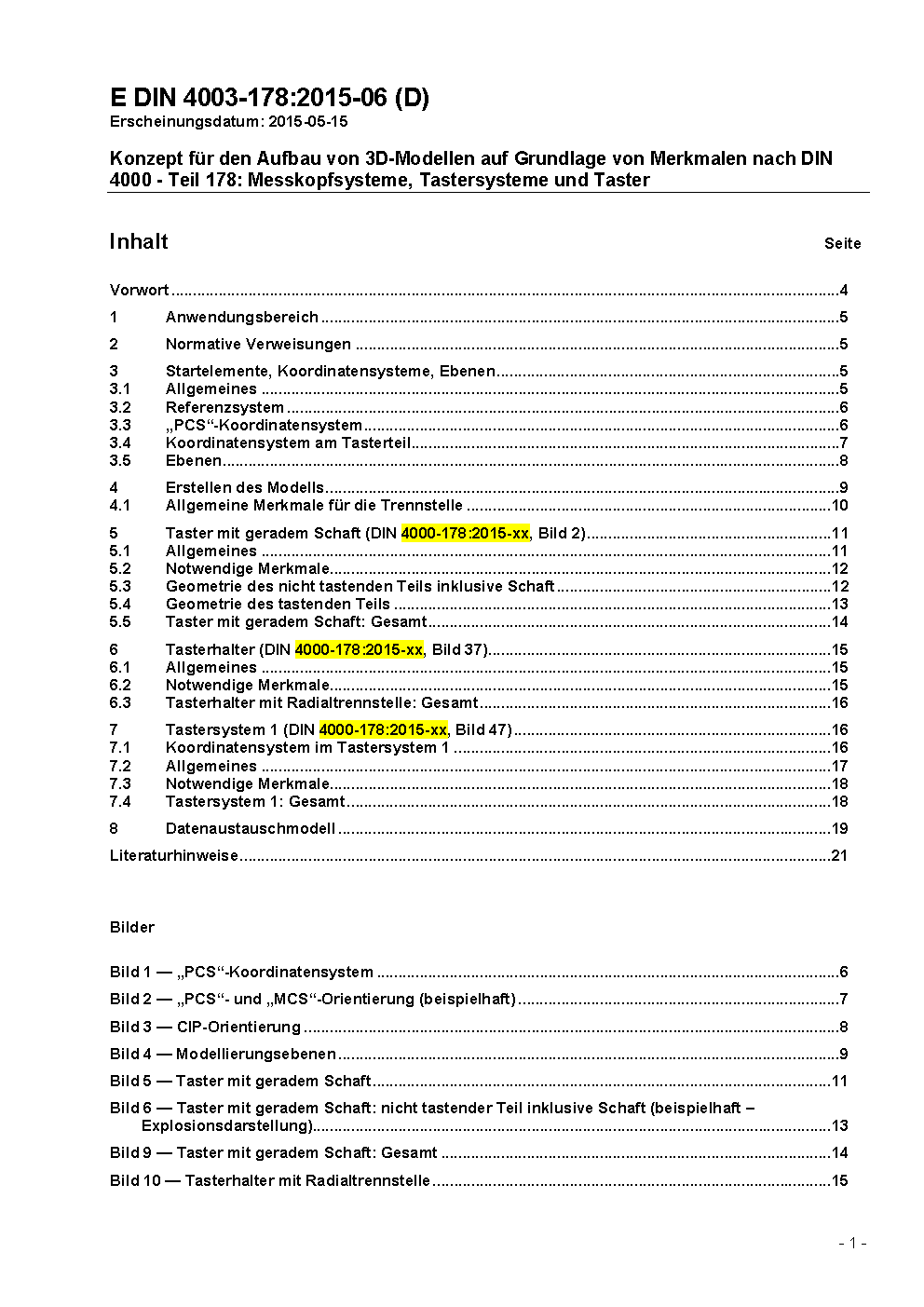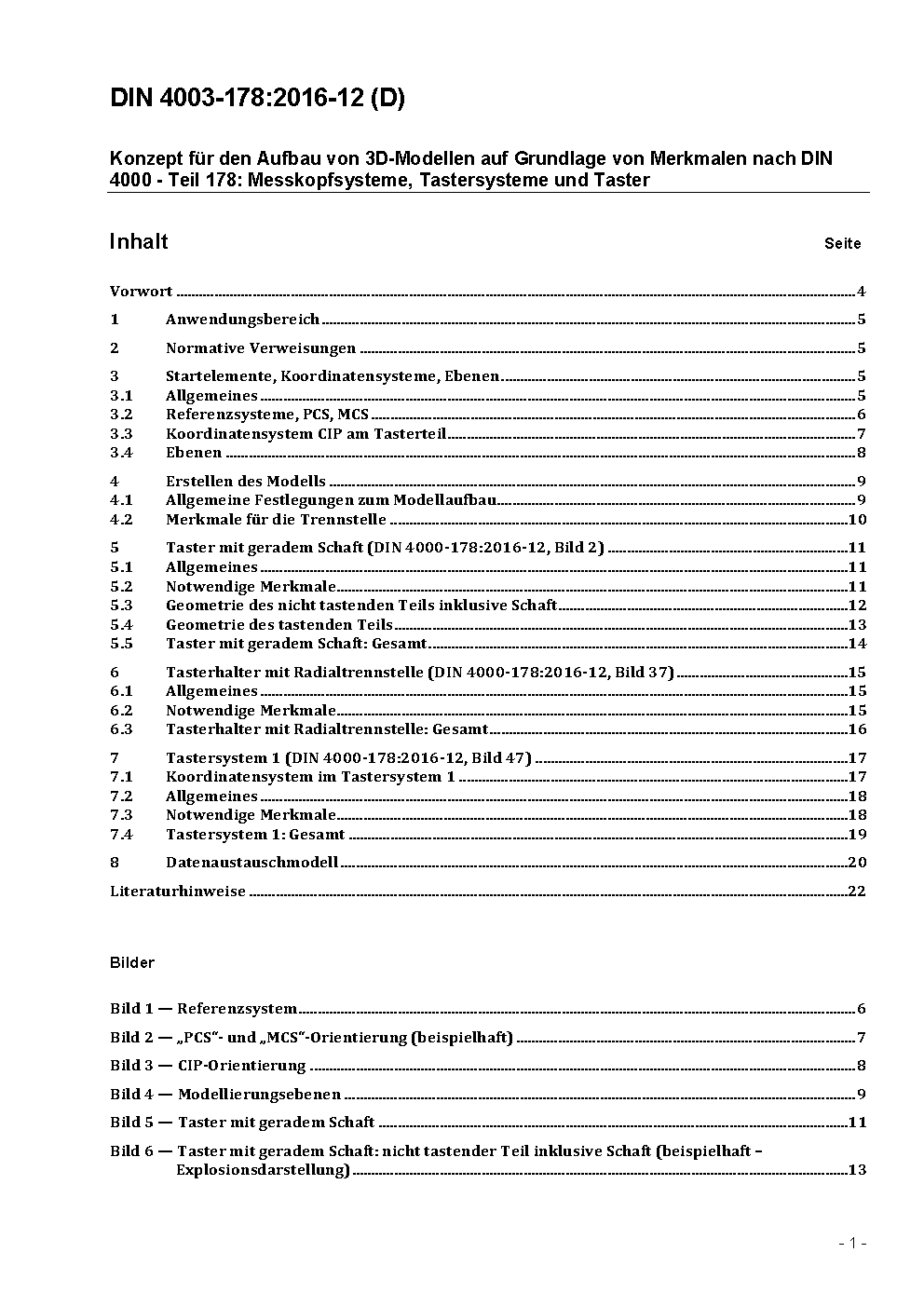 Konzept für den Aufbau von 3D-Modellen auf Grundlage von Merkmalen nach DIN 4000 - Teil 178: Messkopfsysteme, Tastersysteme und Taster / Achtung: Gilt in Verbindung mit DIN 4000-178 (2016-12), DIN 4003-1 (2014-02)