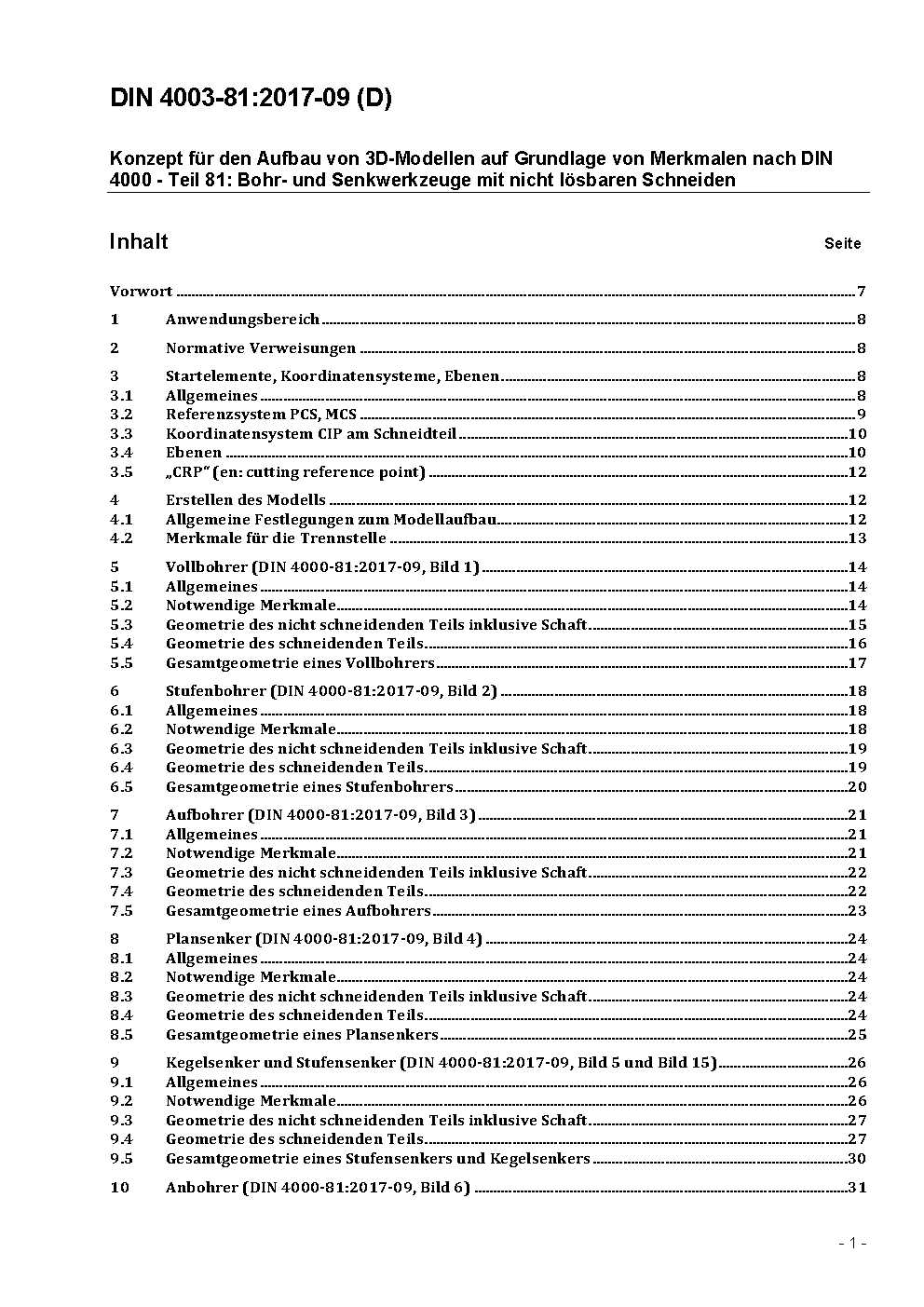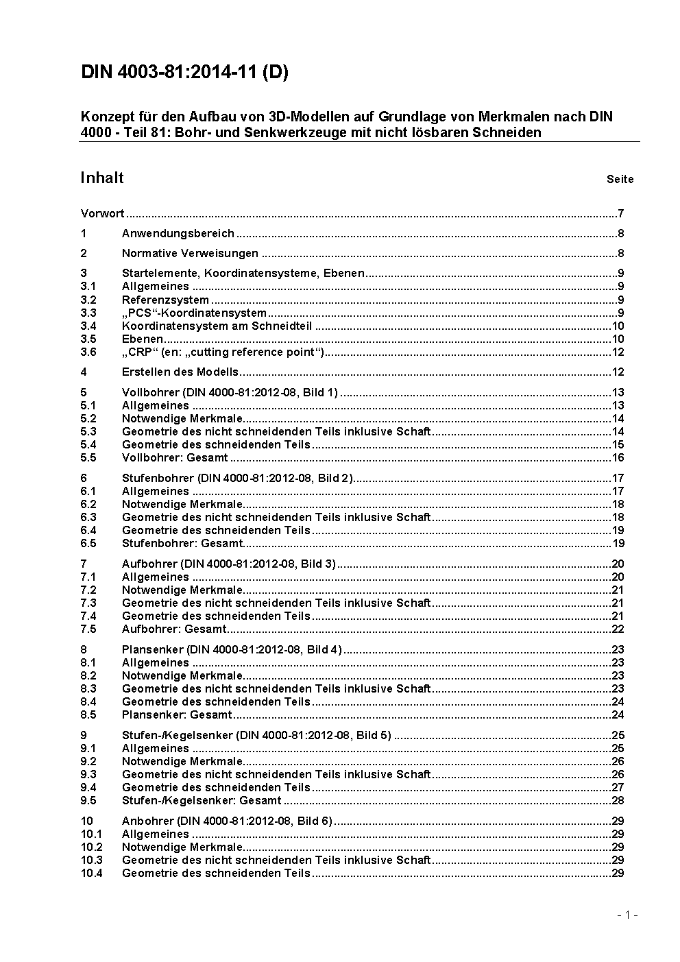 Konzept für den Aufbau von 3D-Modellen auf Grundlage von Merkmalen nach DIN 4000 - Teil 81: Bohr- und Senkwerkzeuge mit nicht lösbaren Schneiden / Achtung: Gilt in Verbindung mit DIN 4000-81 (2010-01), DIN 4003-1 (2011-03)