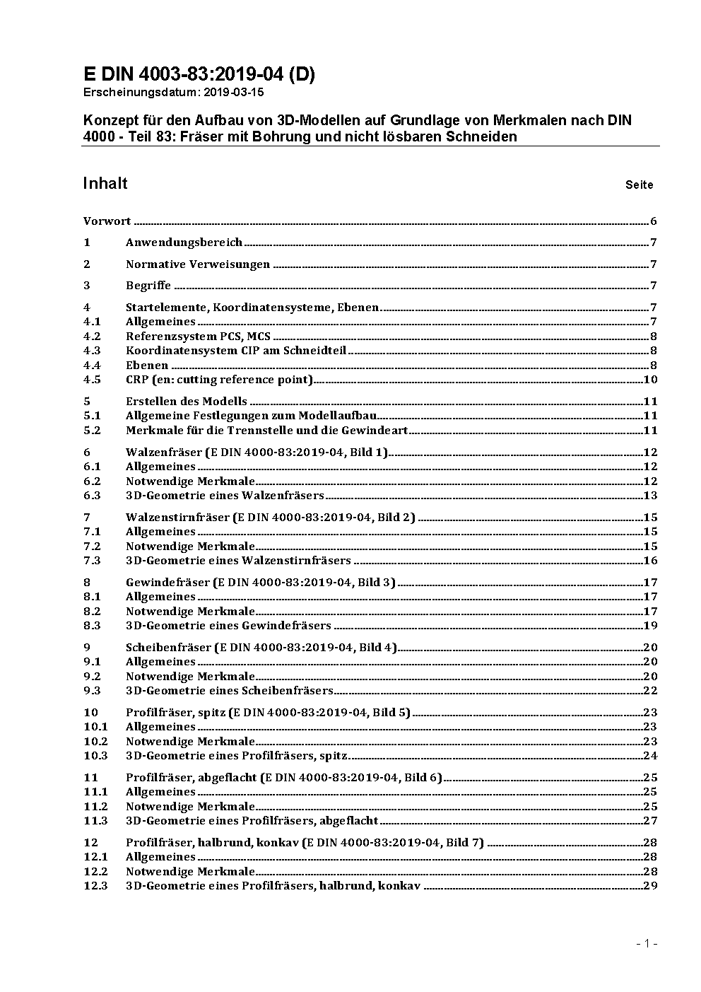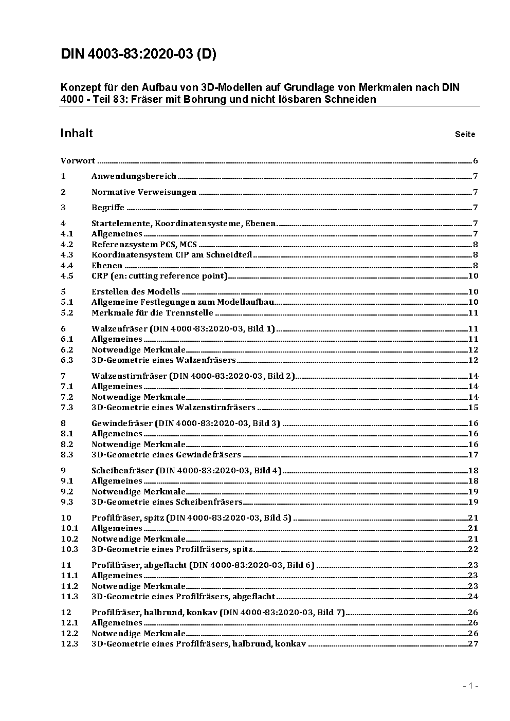 Konzept für den Aufbau von 3D-Modellen auf Grundlage von Merkmalen nach DIN 4000 - Teil 83: Fräser mit Bohrung und nicht lösbaren Schneiden / Achtung: Gilt in Verbindung mit DIN 4000-83 (2011-05), DIN 4003-1 (2011-03)