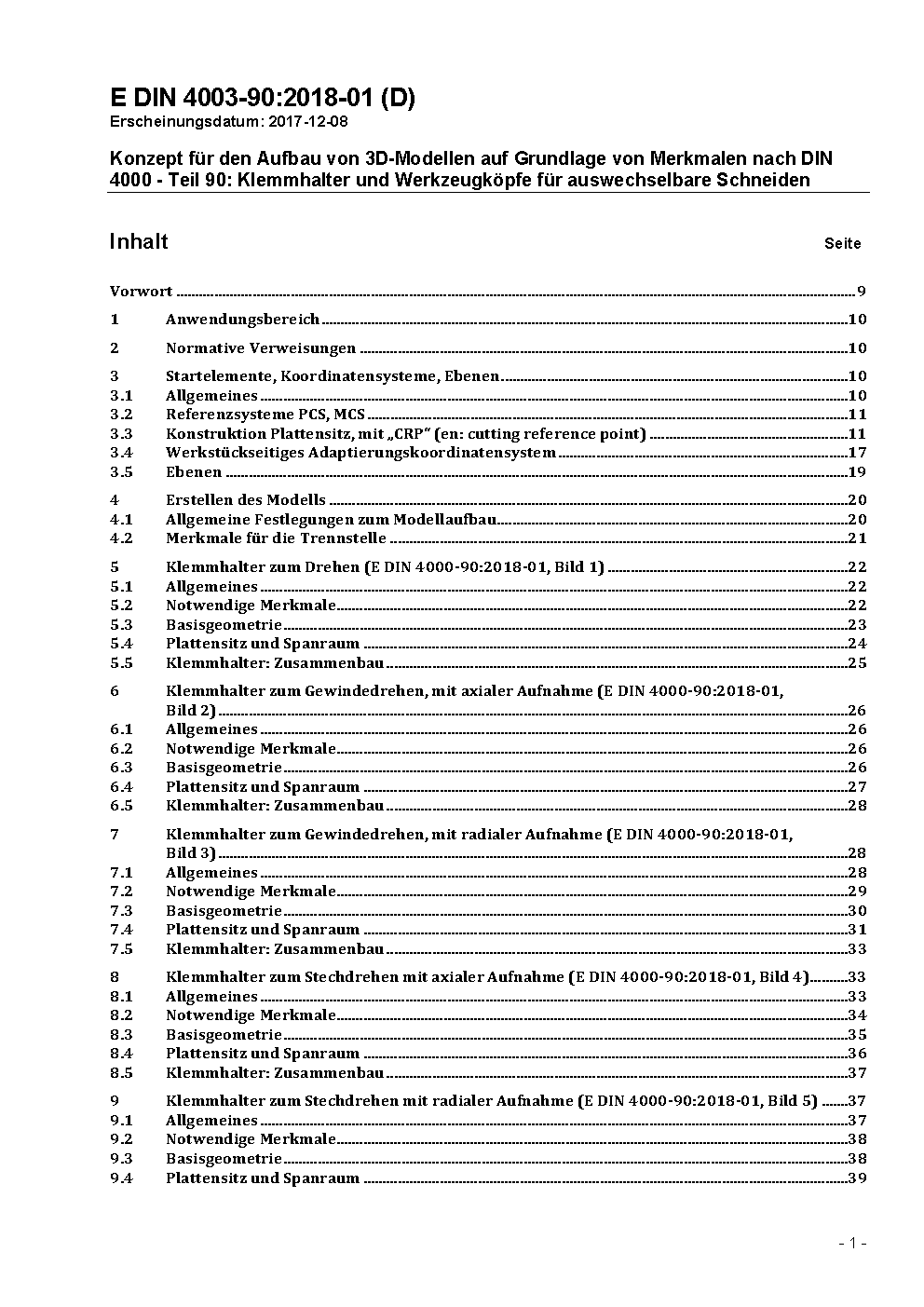 Konzept für den Aufbau von 3D-Modellen auf Grundlage von Merkmalen nach DIN 4000 - Teil 90: Klemmhalter und Werkzeugköpfe für auswechselbare Schneiden / Achtung: Gilt in Verbindung mit DIN 4000-90 (2011-12), DIN 4003-1 (2011-03)
