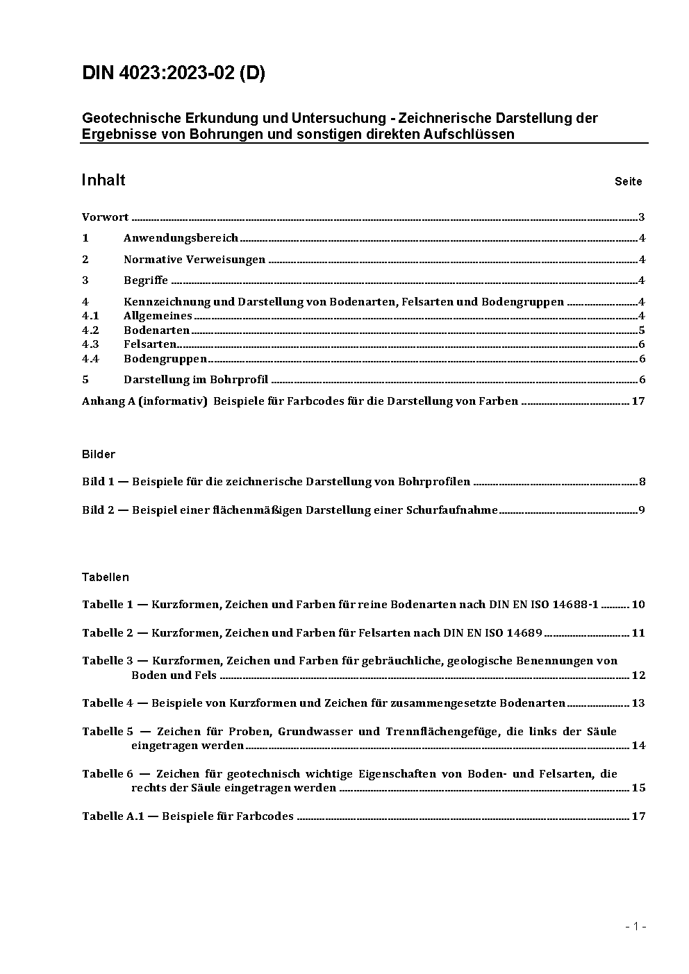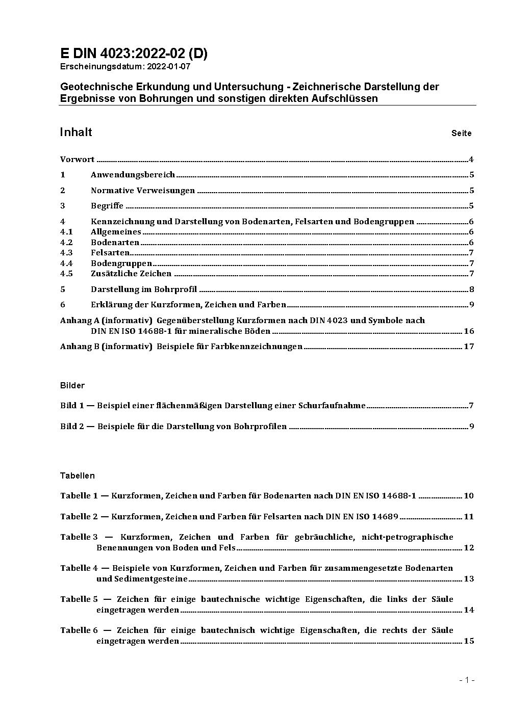 Geotechnische Erkundung und Untersuchung - Zeichnerische Darstellung der Ergebnisse von Bohrungen und sonstigen direkten Aufschlüssen
