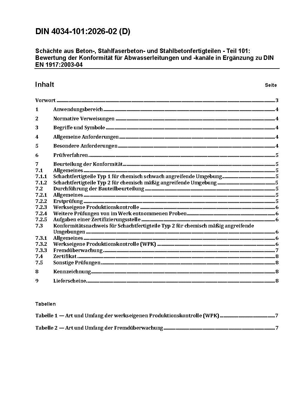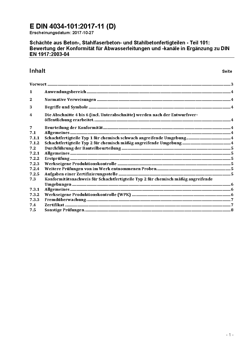 Schächte aus Beton-, Stahlfaserbeton- und Stahlbetonfertigteilen - Teil 101: Bewertung der Konformität für Abwasserleitungen und -kanäle in Ergänzung zu DIN EN 1917:2003-04 / Achtung: Gilt in Verbindung mit DIN 4034-1 (2019-04), DIN EN 1917 (2003-04)
