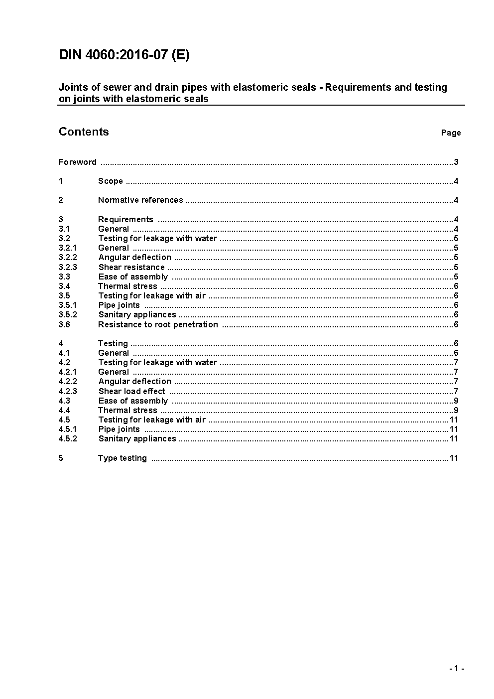 Joints of sewer and drain pipes with elastomeric seals - Requirements and testing on joints with elastomeric seals.
