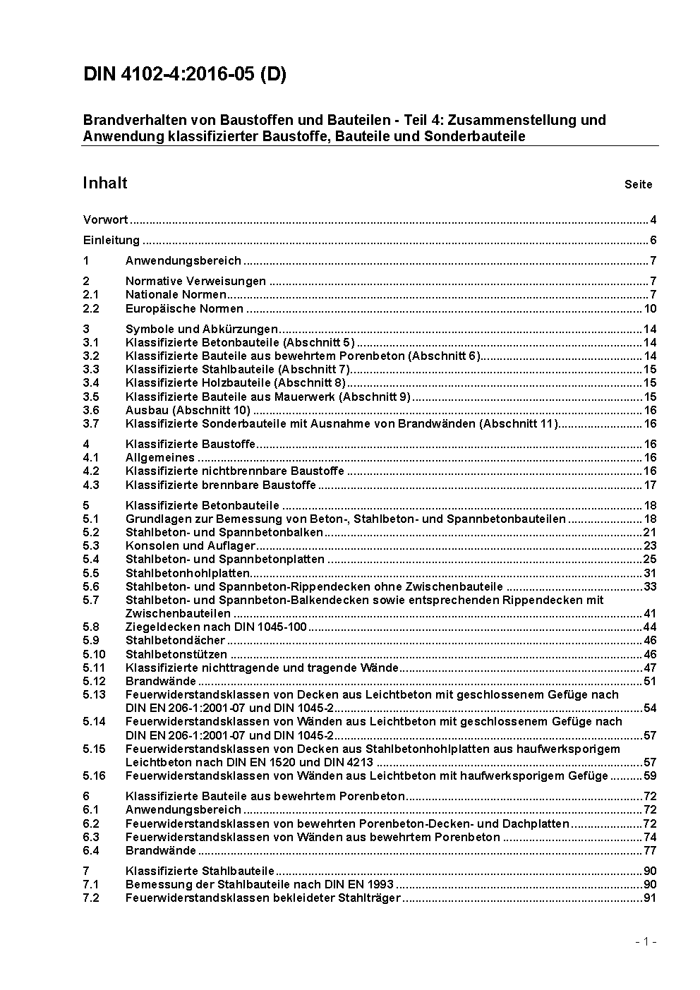 Brandverhalten von Baustoffen und Bauteilen - Teil 4: Zusammenstellung und Anwendung klassifizierter Baustoffe, Bauteile und Sonderbauteile