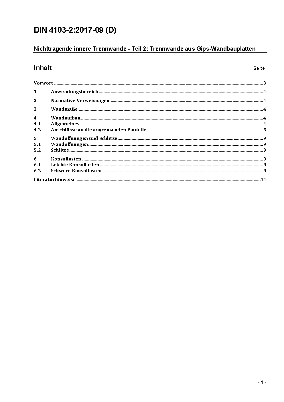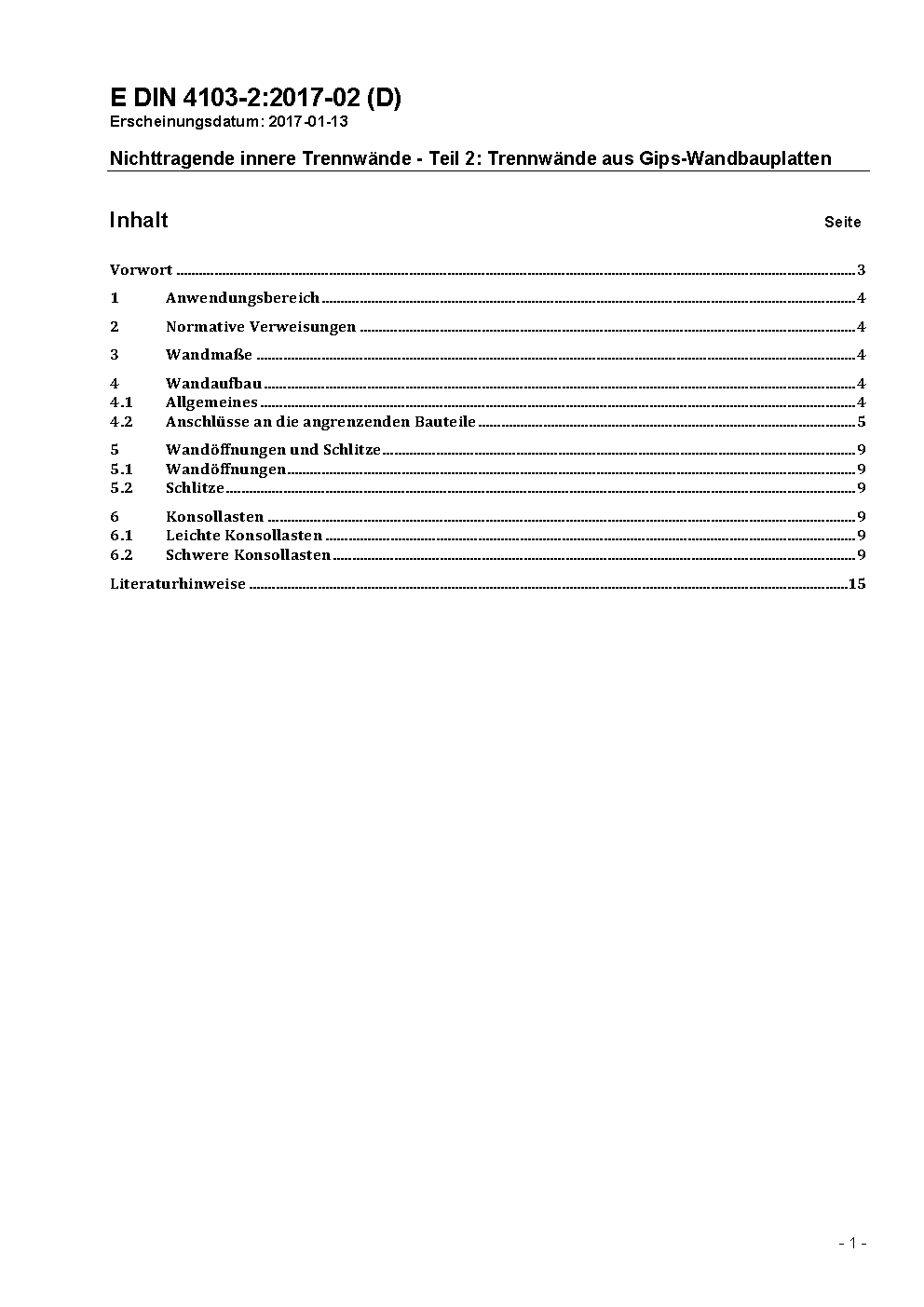 Nichttragende innere Trennwände - Teil 2: Trennwände aus Gips-Wandbauplatten