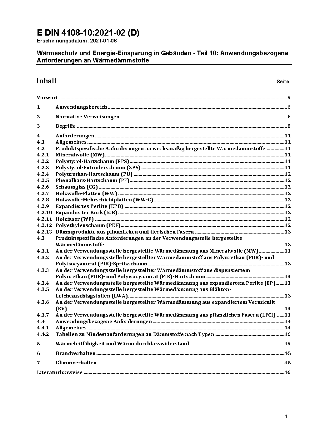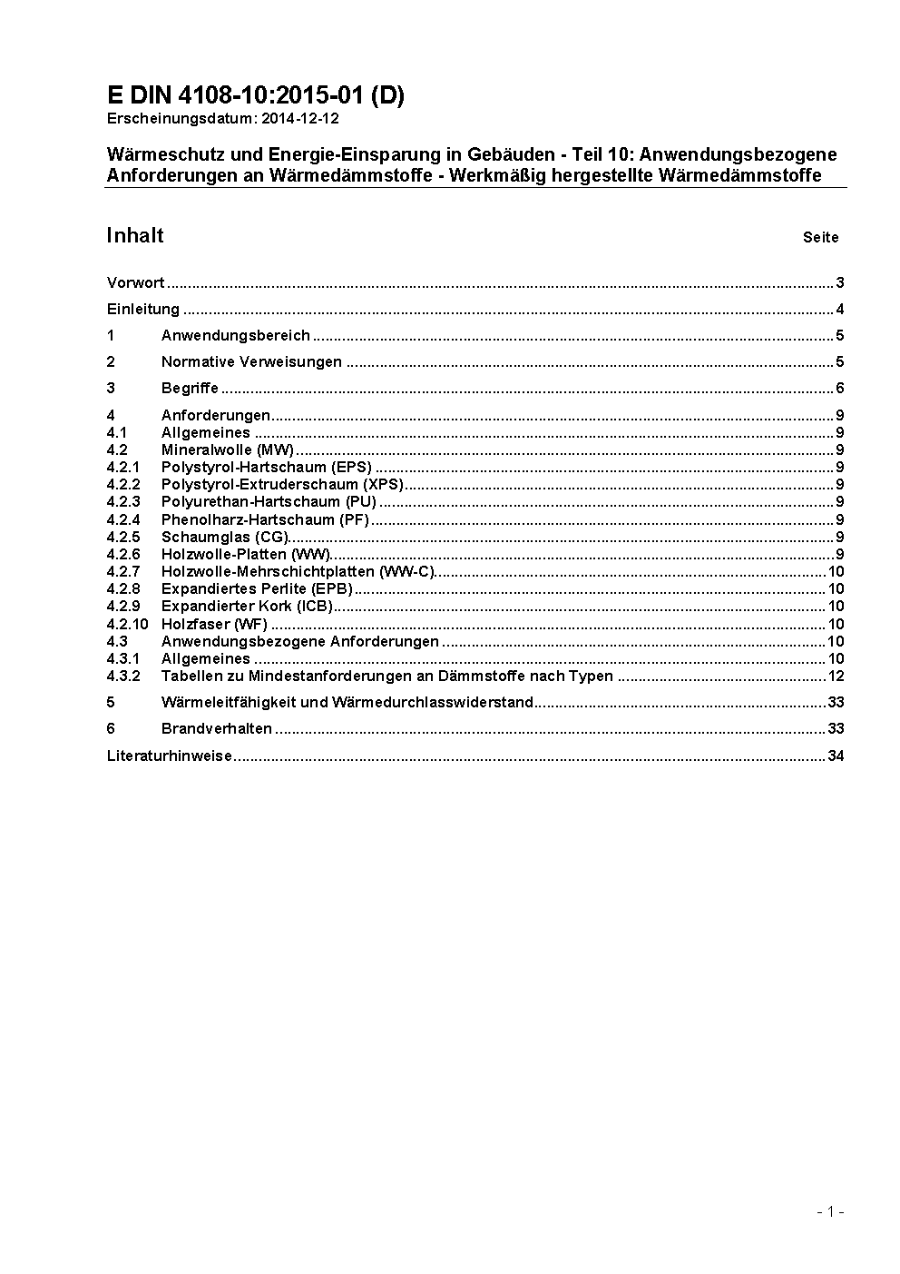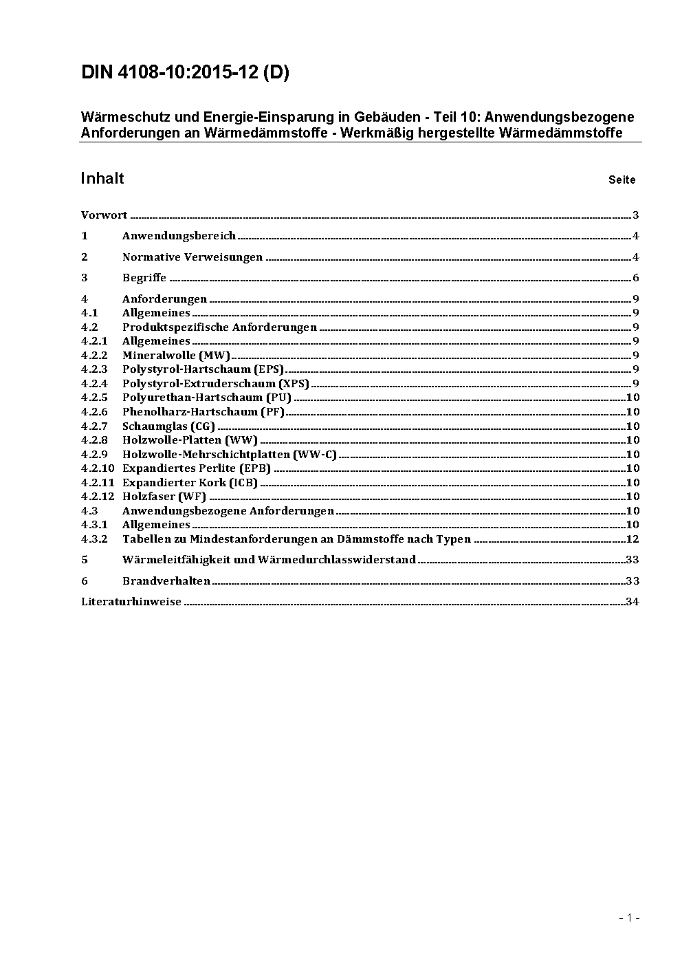 Wärmeschutz und Energie-Einsparung in Gebäuden - Teil 10: Anwendungsbezogene Anforderungen an Wärmedämmstoffe - Werkmäßig hergestellte Wärmedämmstoffe