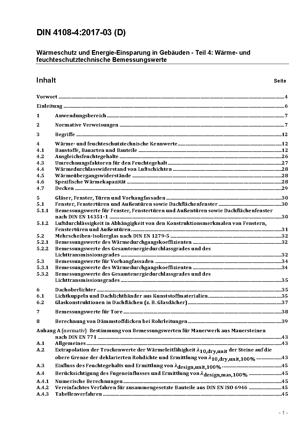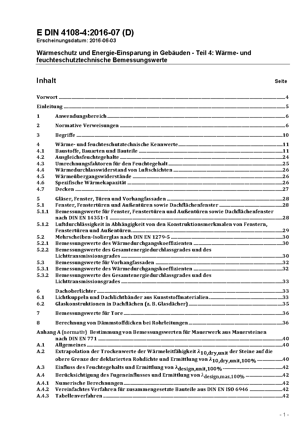 Wärmeschutz und Energie-Einsparung in Gebäuden - Teil 4: Wärme- und feuchteschutztechnische Bemessungswerte
