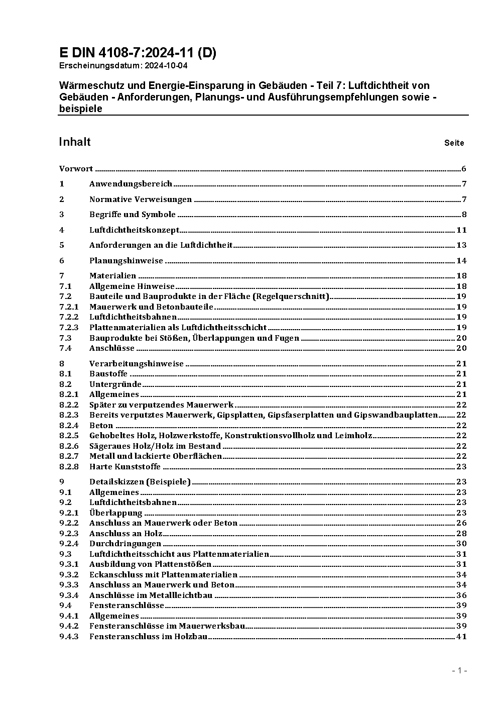 Wärmeschutz und Energie-Einsparung in Gebäuden - Teil 7: Luftdichtheit von Gebäuden - Anforderungen, Planungs- und Ausführungsempfehlungen sowie -beispiele