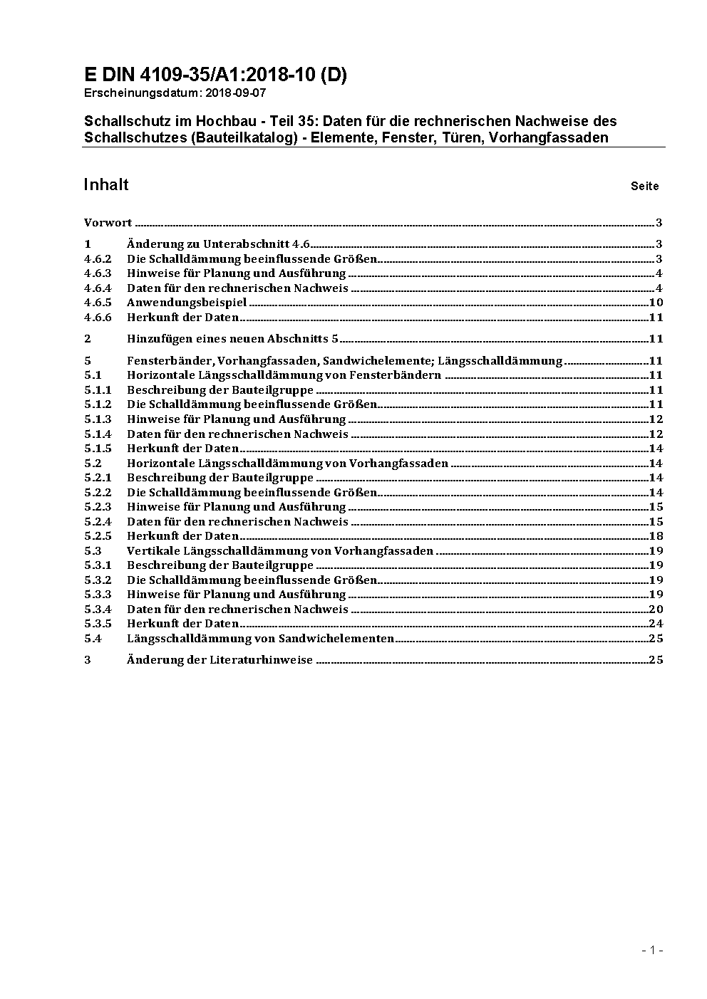 Schallschutz im Hochbau - Teil 35: Daten für die rechnerischen Nachweise des Schallschutzes (Bauteilkatalog) - Elemente, Fenster, Türen, Vorhangfassaden / Achtung: Gilt in Verbindung mit DIN 4109-31 (2016-07)