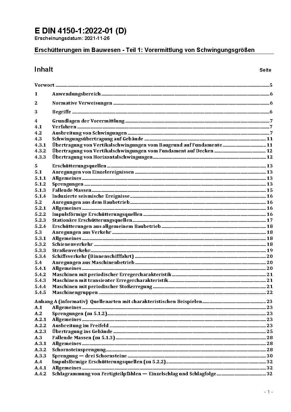 Erschütterungen im Bauwesen - Teil 1: Vorermittlung von Schwingungsgrößen