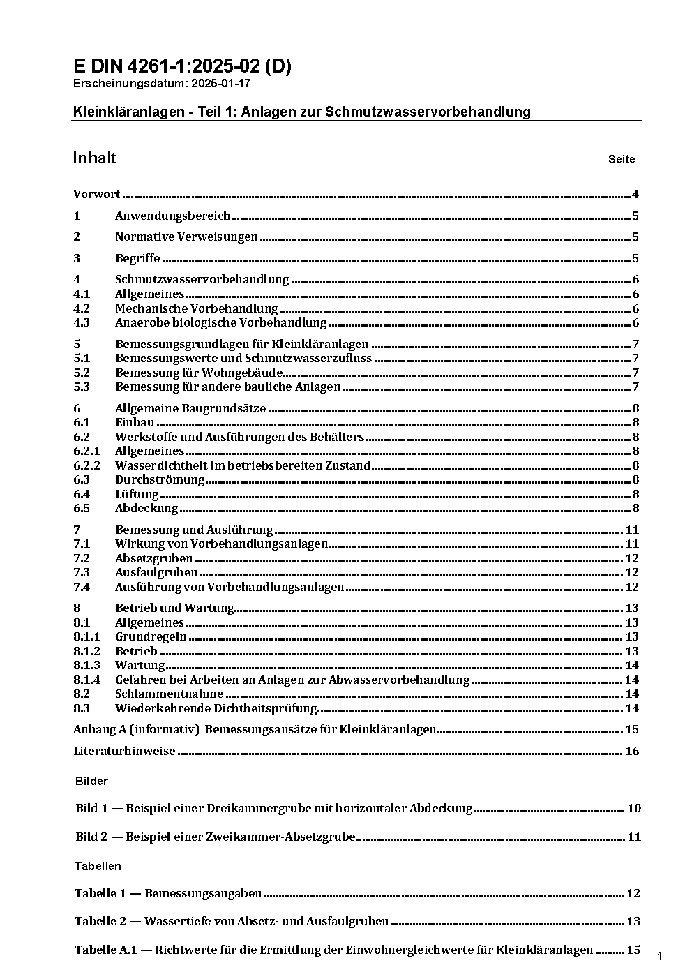 Kleinkläranlagen - Teil 1: Anlagen zur Schmutzwasservorbehandlung