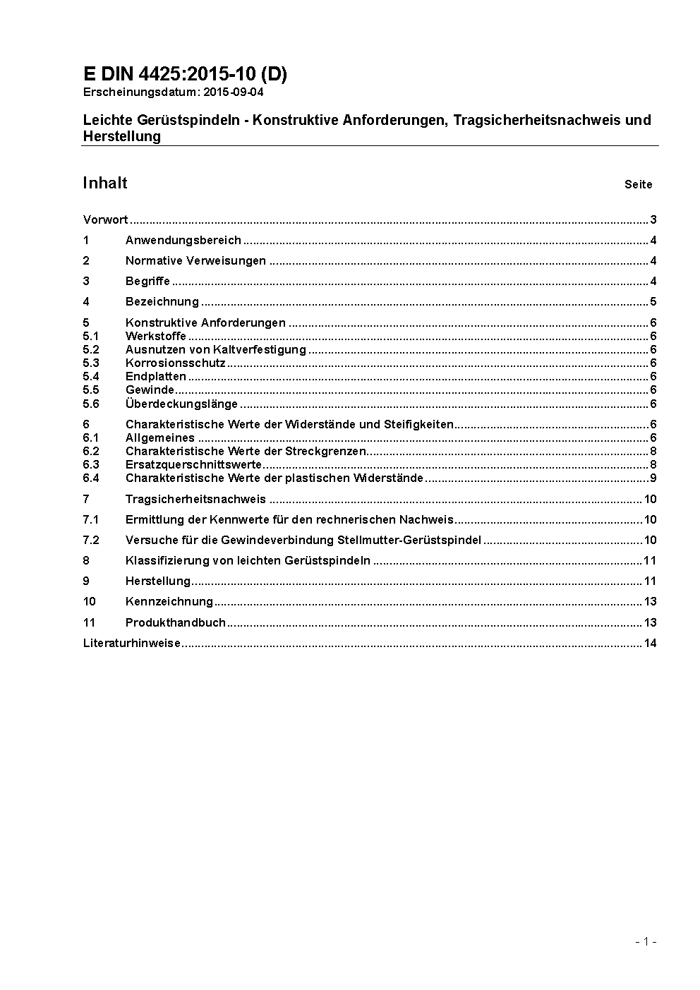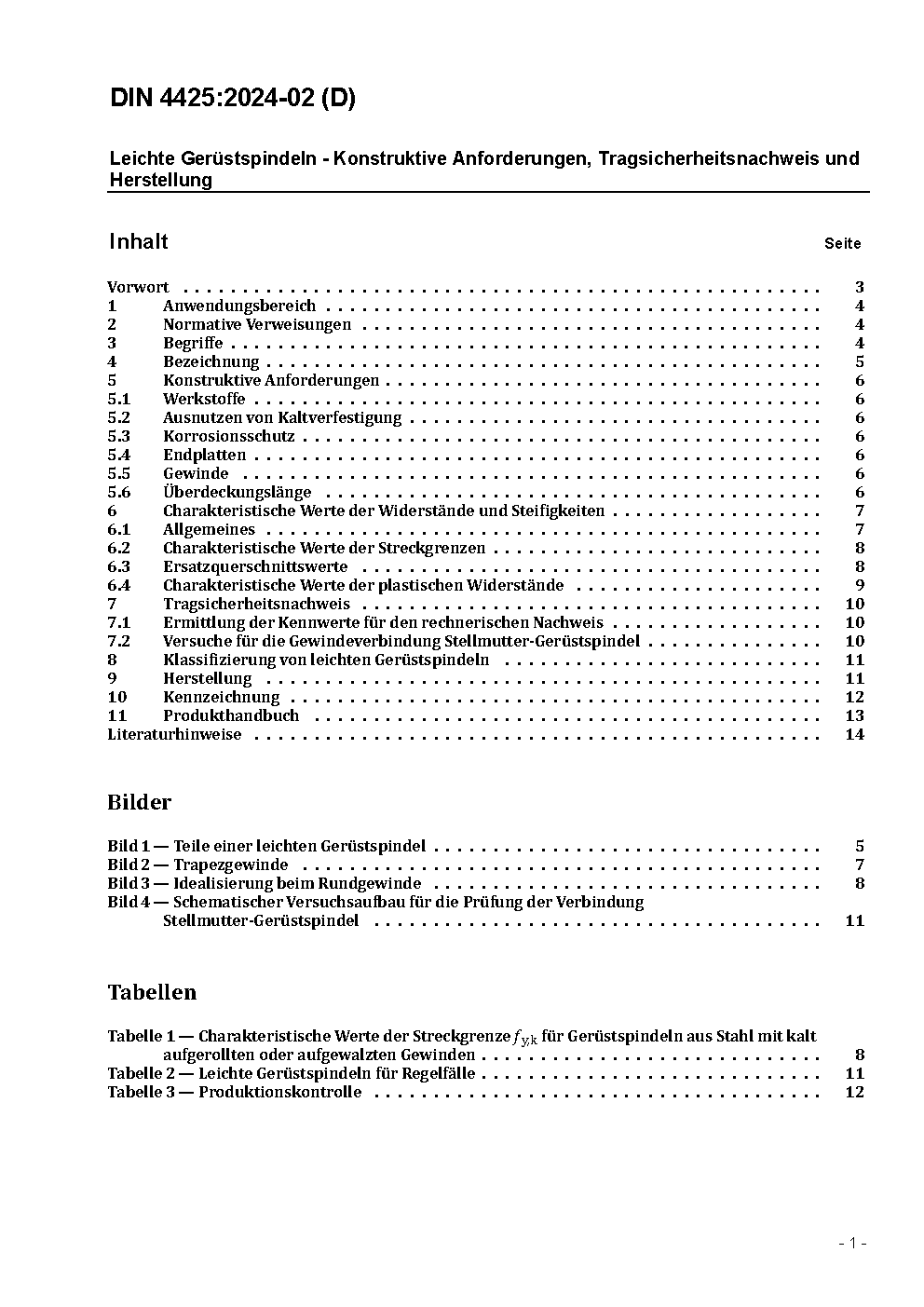 Leichte Gerüstspindeln; Konstruktive Anforderungen, Tragsicherheitsnachweis und Überwachung