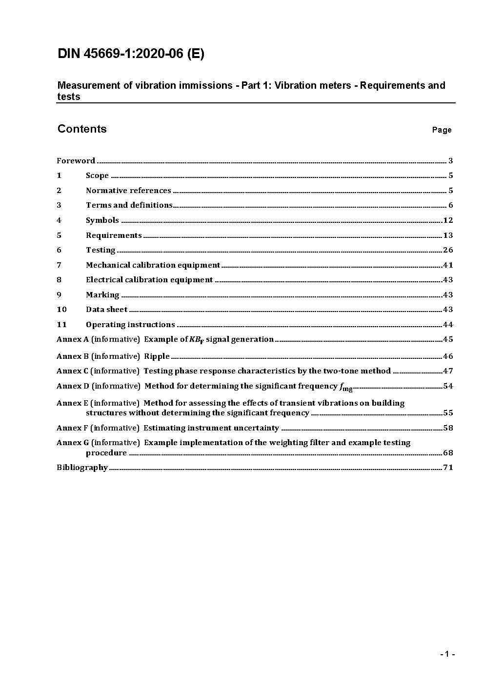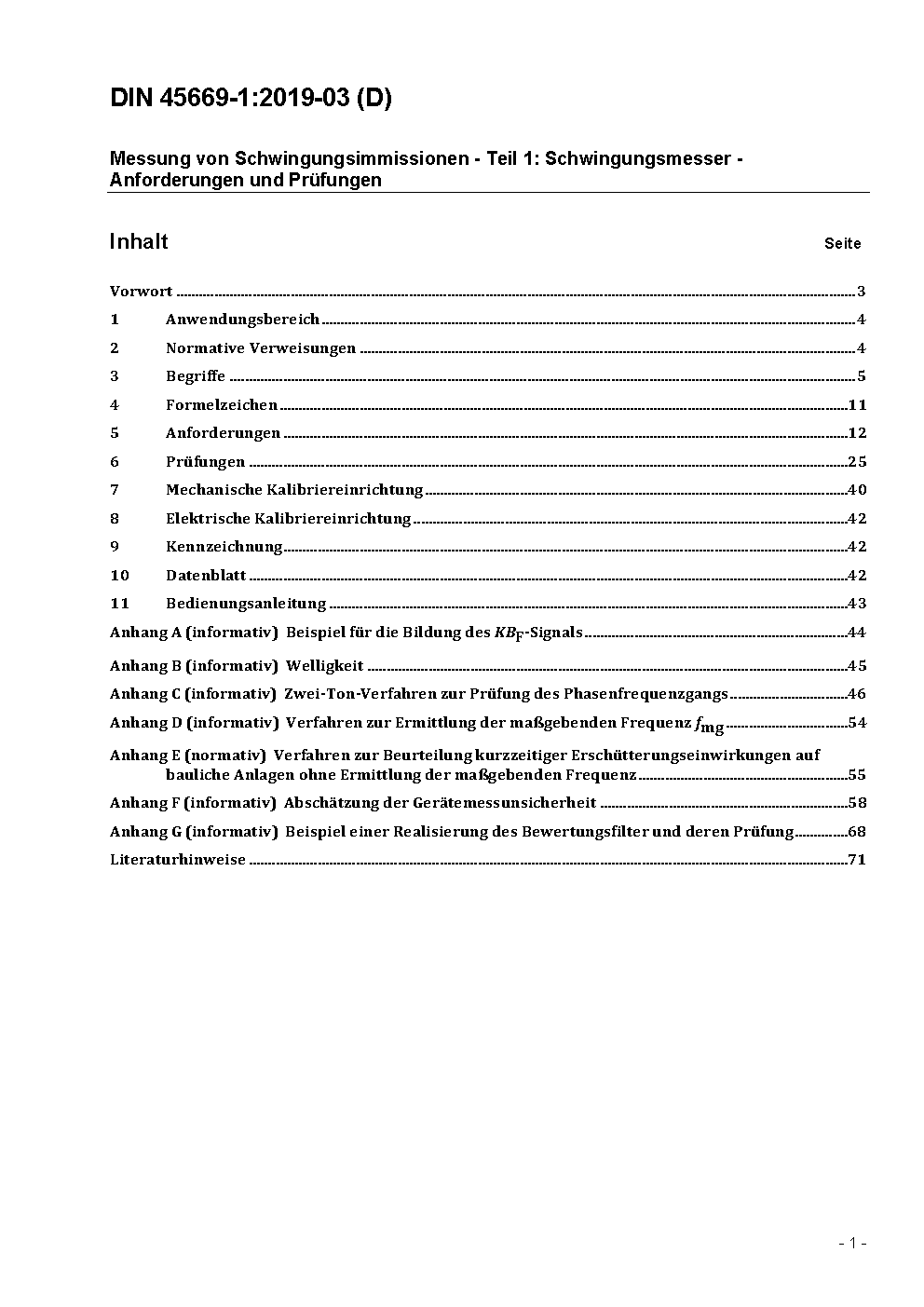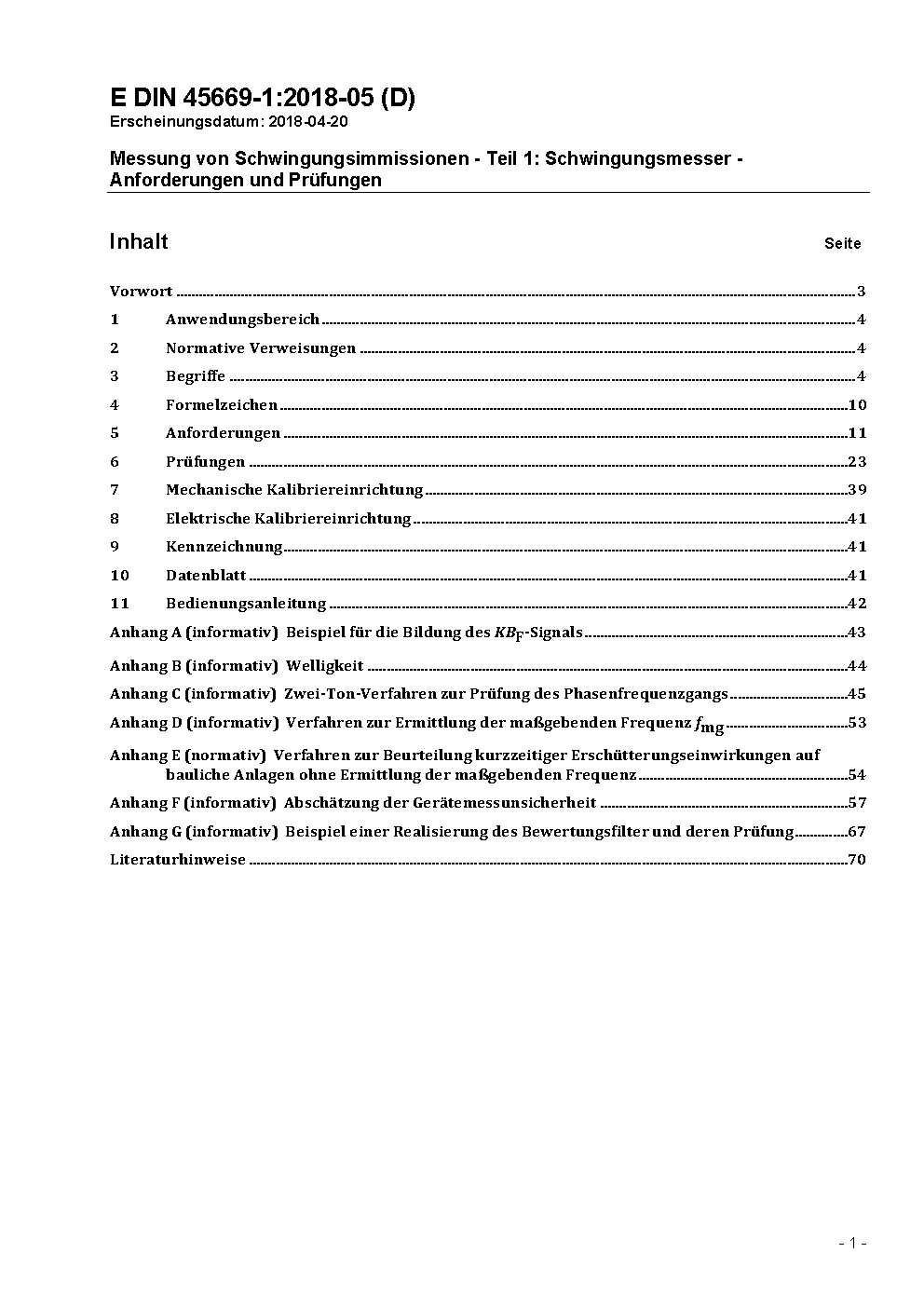 Messung von Schwingungsimmissionen - Teil 1: Schwingungsmesser - Anforderungen und Prüfungen