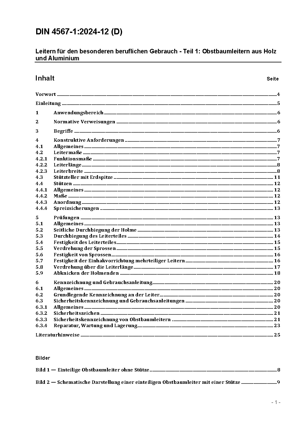Leitern für den besonderen beruflichen Gebrauch - Teil 1: Obstbaumleitern aus Holz und Aluminium