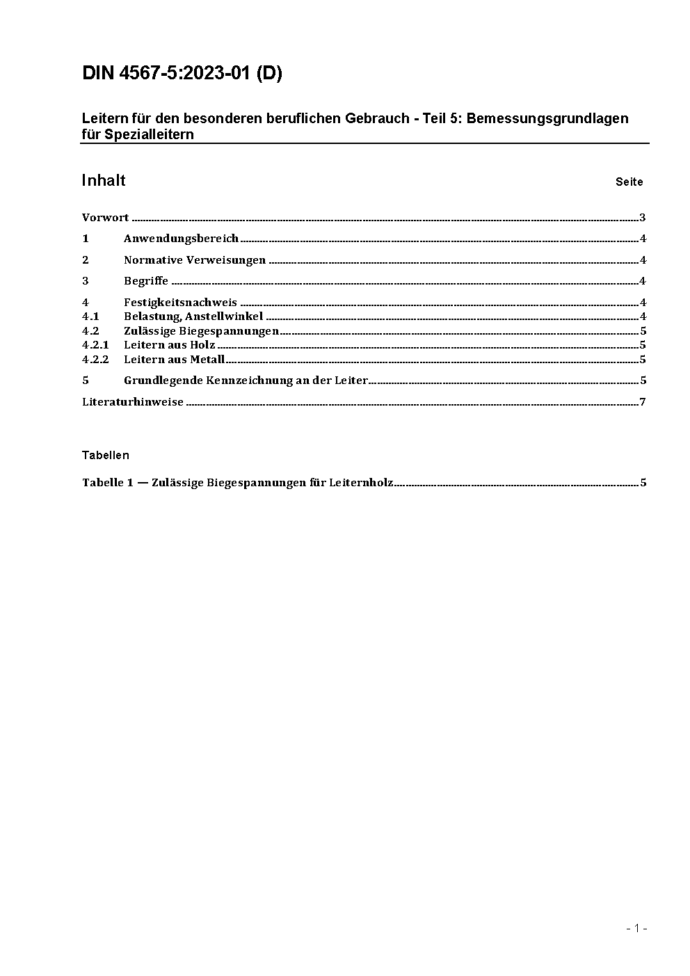 Leitern für den besonderen beruflichen Gebrauch - Teil 5: Bemessungsgrundlagen für Spezialleitern