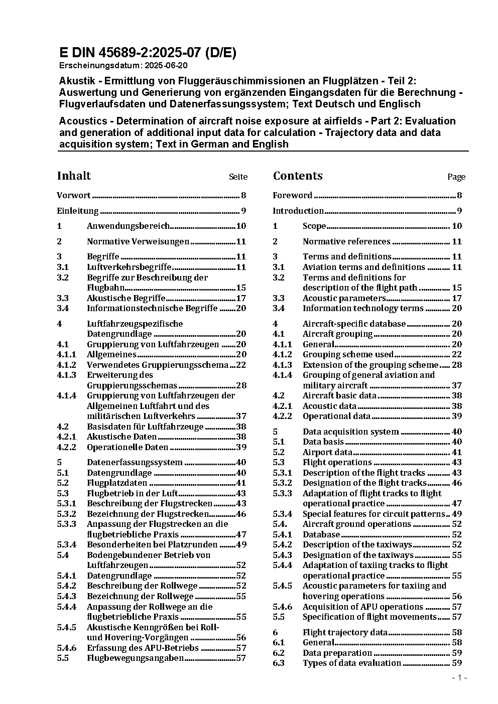 Akustik - Ermittlung von Fluggeräuschimmissionen an Flugplätzen - Teil 2: Auswertung und Generierung von ergänzenden Eingangsdaten für die Berechnung - Flugverlaufsdaten und Datenerfassungssystem; Text Deutsch und Englisch