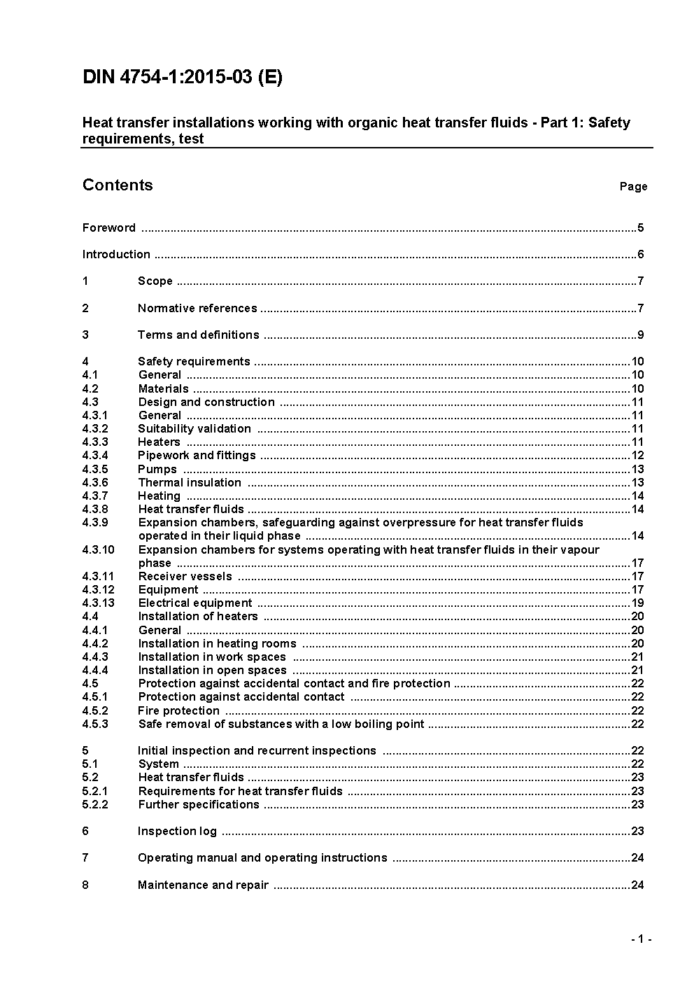 Wärmeübertragungsanlagen mit organischen Wärmeträgern - Teil 1: Sicherheitstechnische Anforderungen, Prüfung