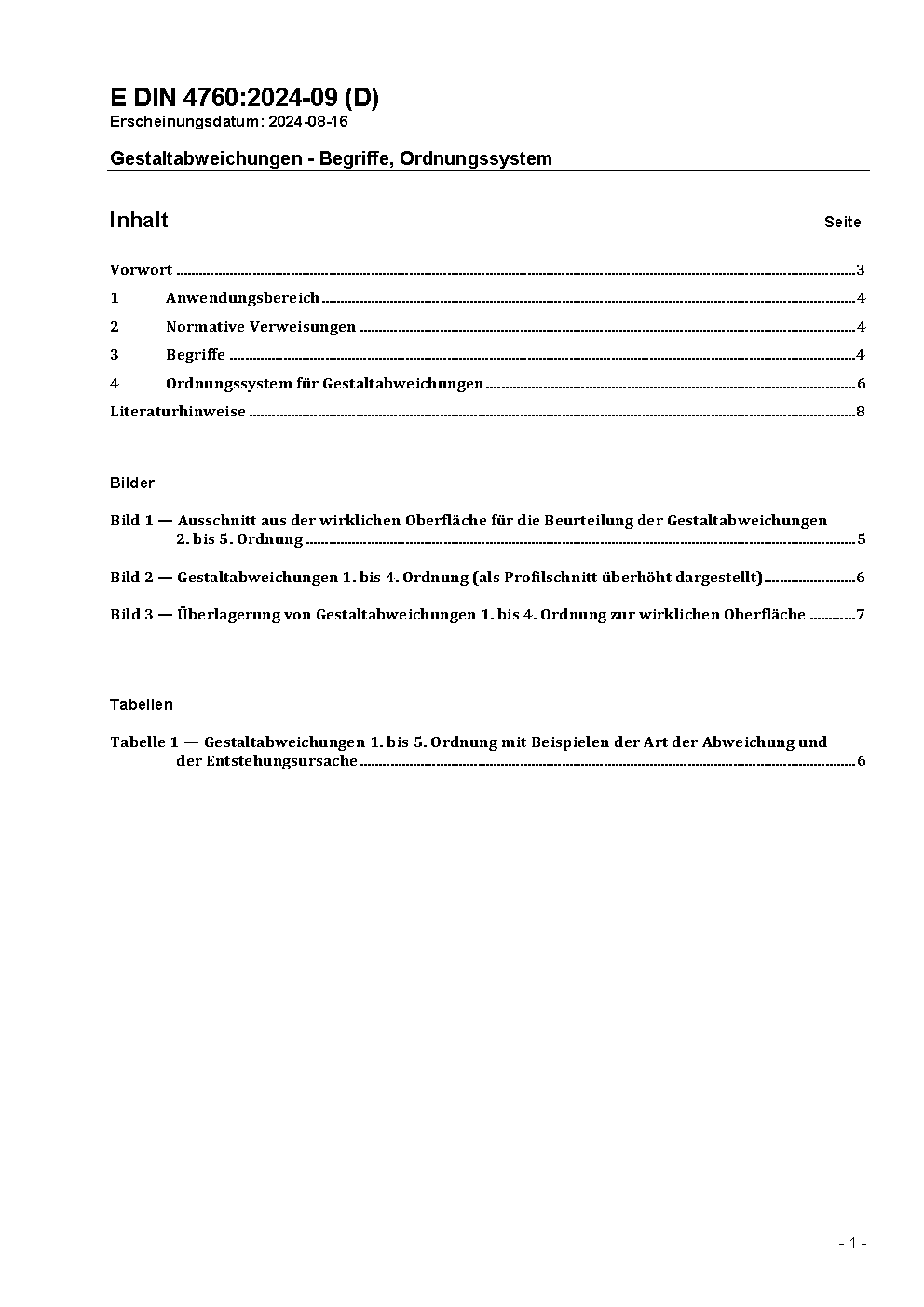 Gestaltabweichungen; Begriffe, Ordnungssystem
