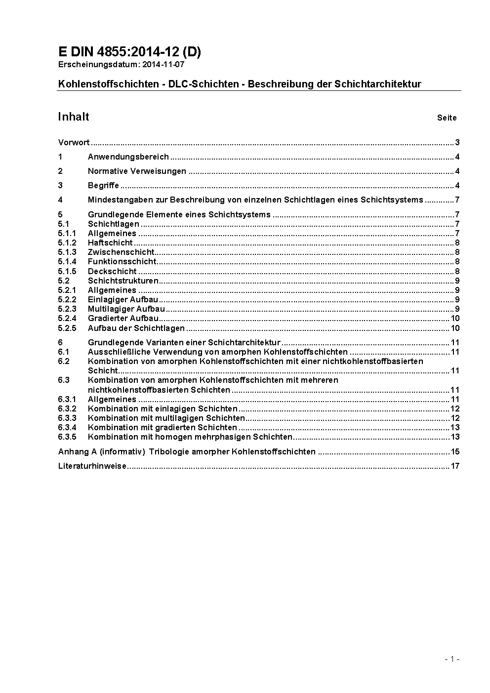 Kohlenstoffschichten - DLC-Schichten - Beschreibung der Schichtarchitektur