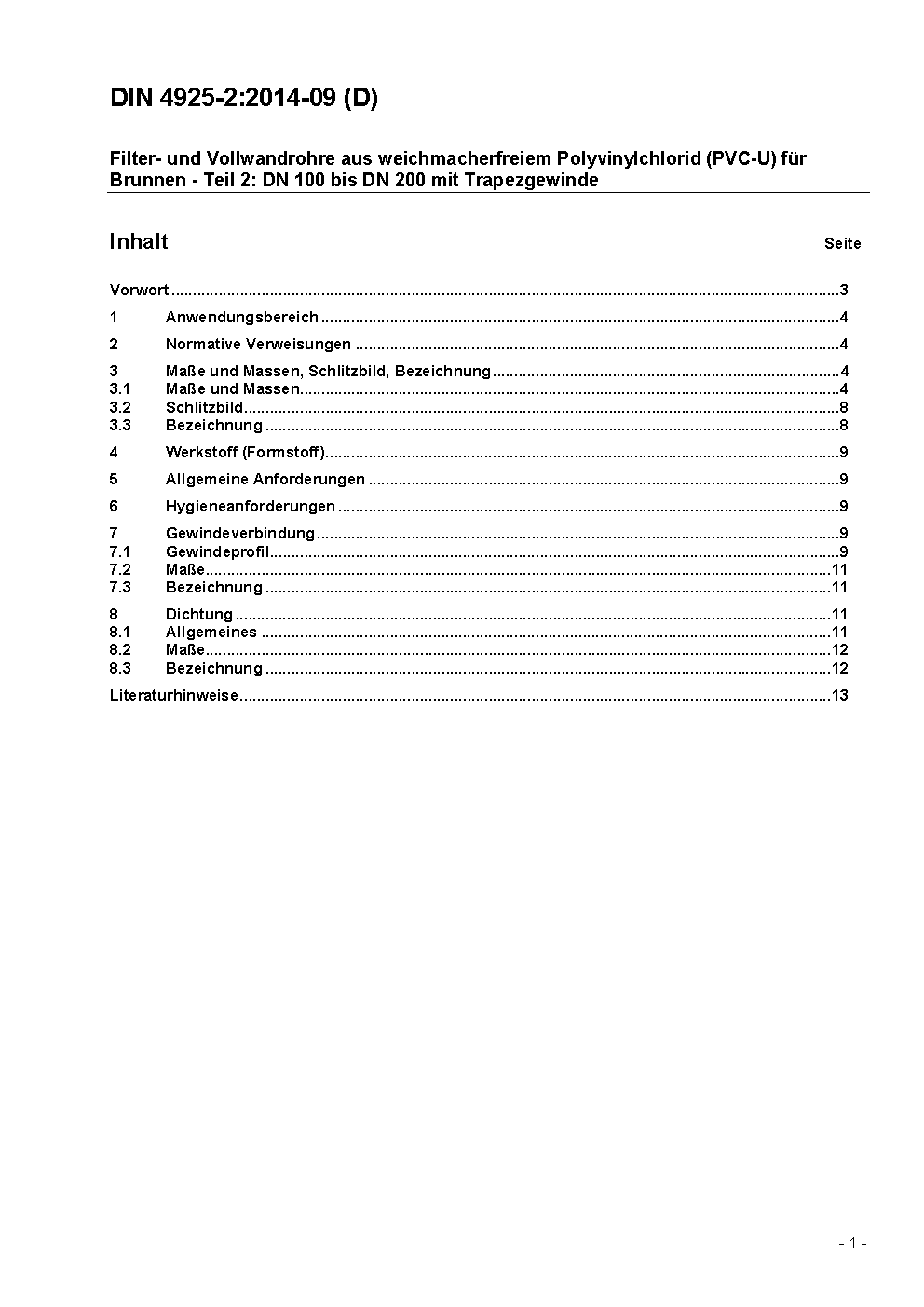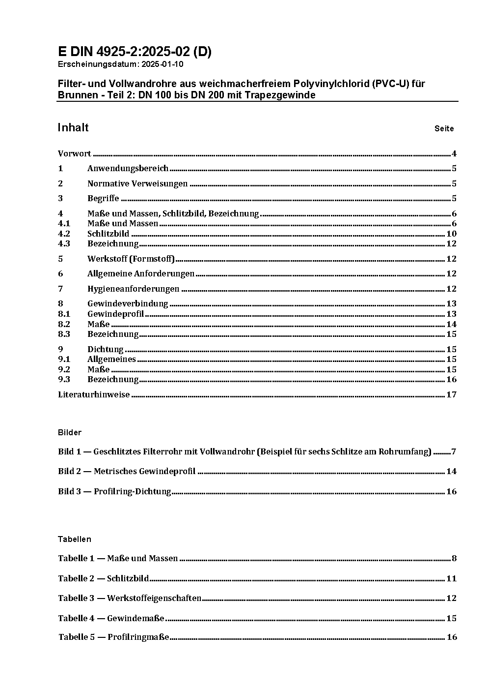 Filter- und Vollwandrohre aus weichmacherfreiem Polyvinylchlorid (PVC-U) für Bohrbrunnen - Teil 2: DN 100 bis DN 200 mit Trapezgewinde