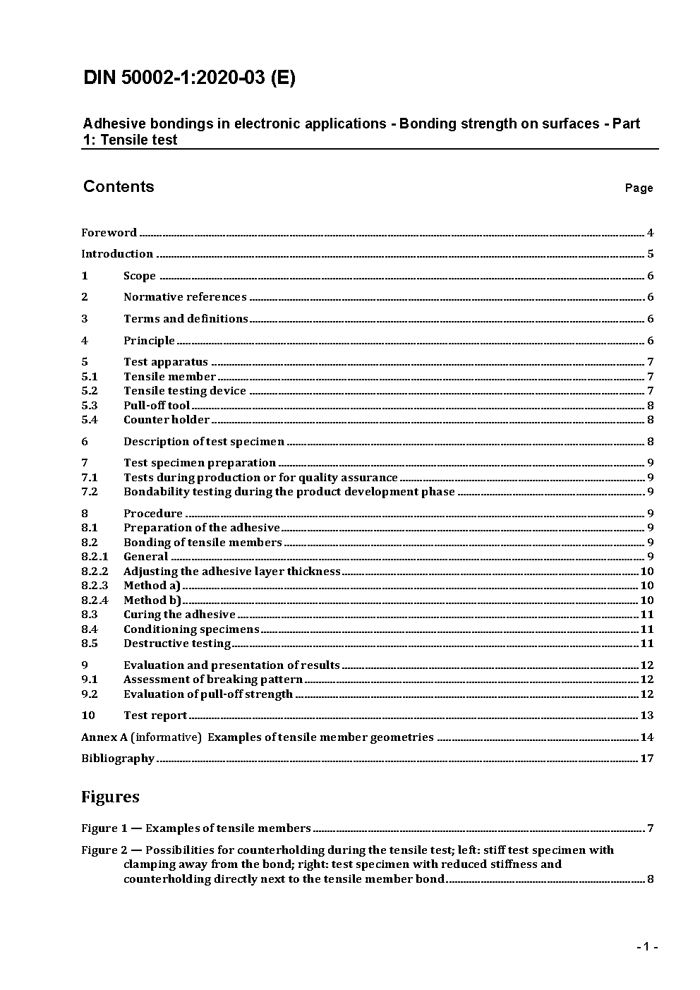 Adhesive bondings in electronic applications - Bonding strength on surfaces - Part 1: Tensile test