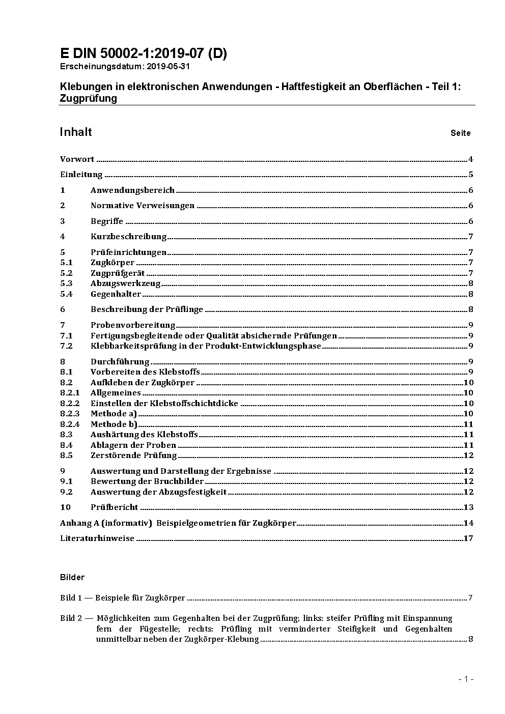 Klebungen in elektronischen Anwendungen - Haftfestigkeit an Oberflächen - Teil 1: Zugprüfung